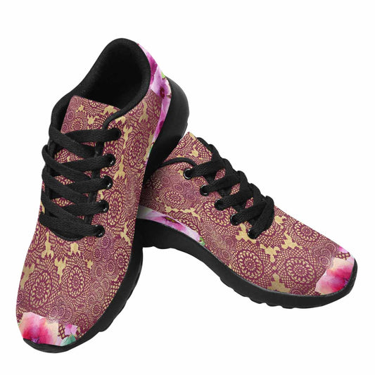 Victorian lace print, womens cute casual or running sneakers, design 07