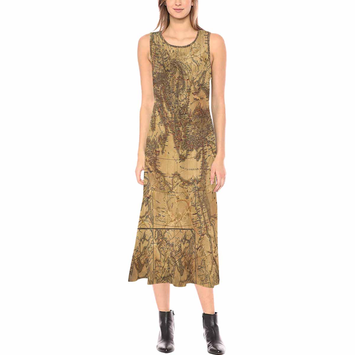 Antique Map chic long dress, Design 14