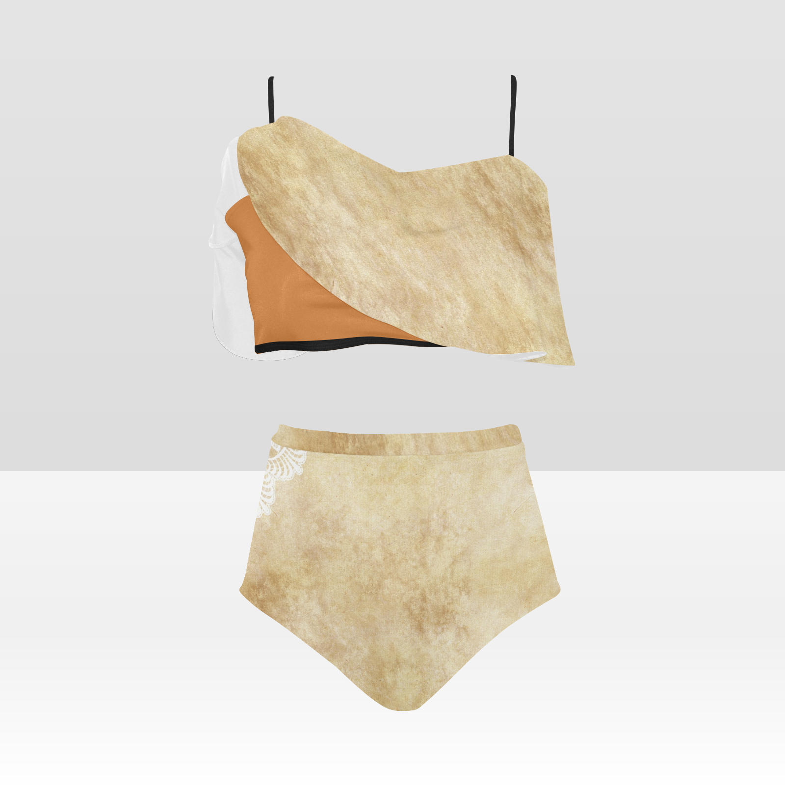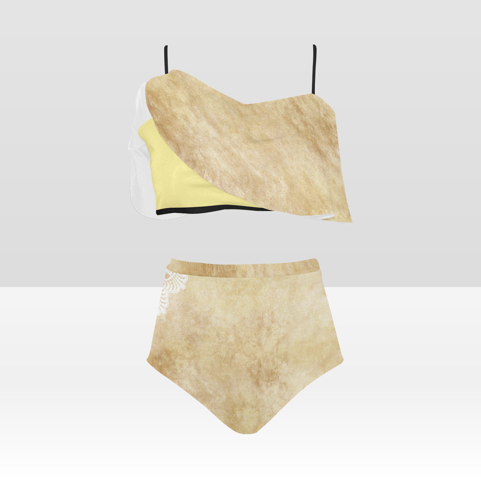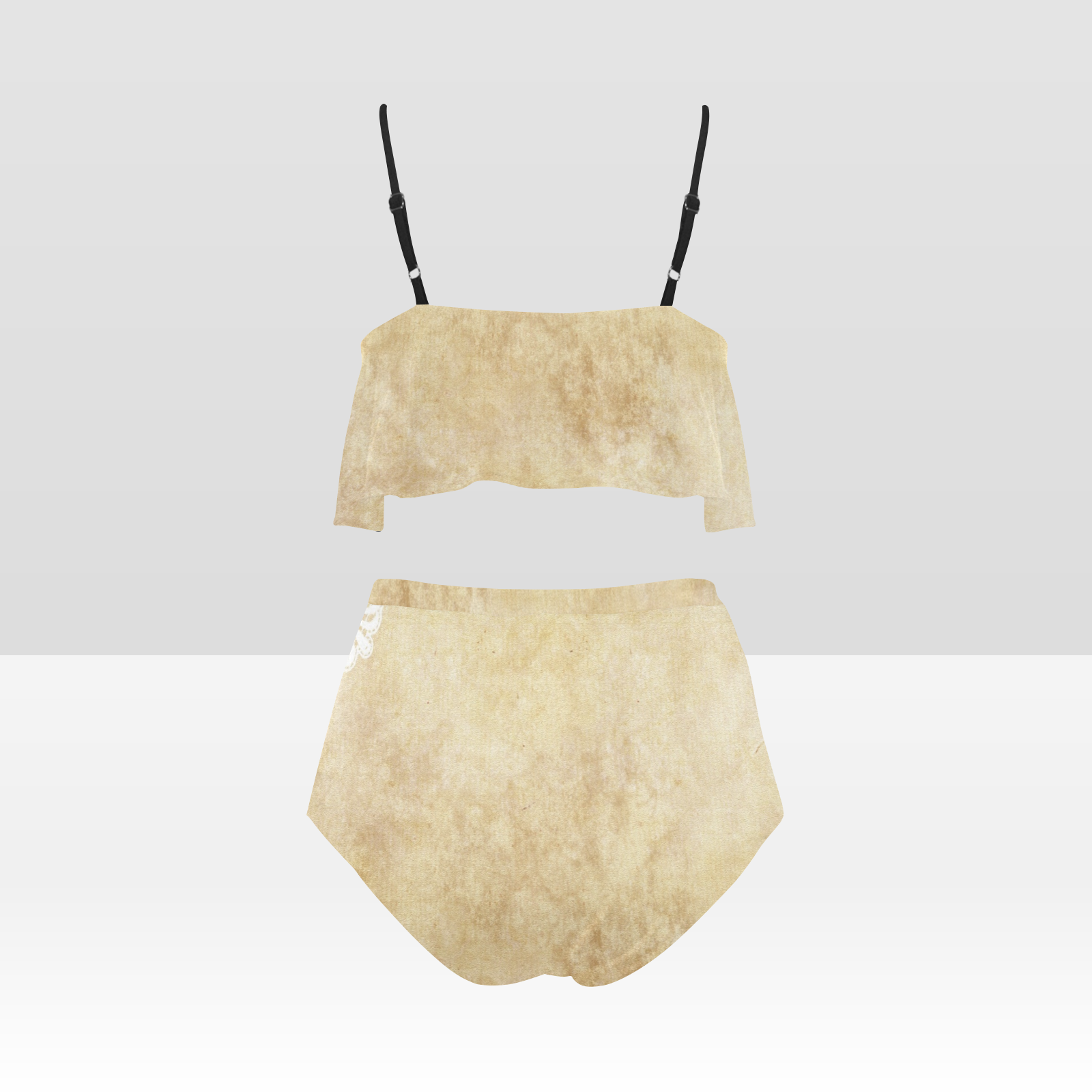 Flounce & Ruffle Bikini swimwear, Printed Victorian lace, Design 29 High Waisted Ruffle Bikini Set-A/B (Model SO3)