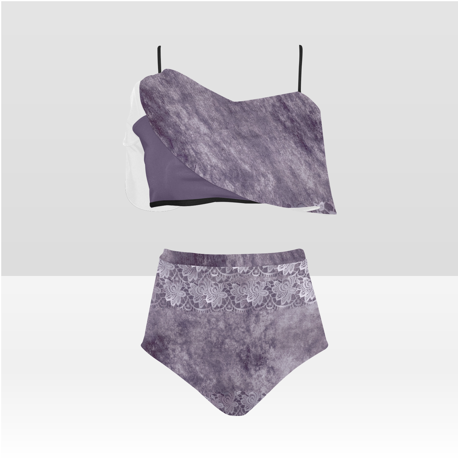 Flounce & Ruffle Bikini swimwear, Printed Victorian lace, Design 39 High Waisted Ruffle Bikini Set-A/B (Model SO3)