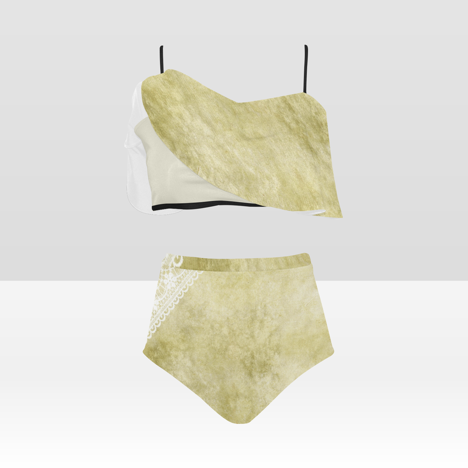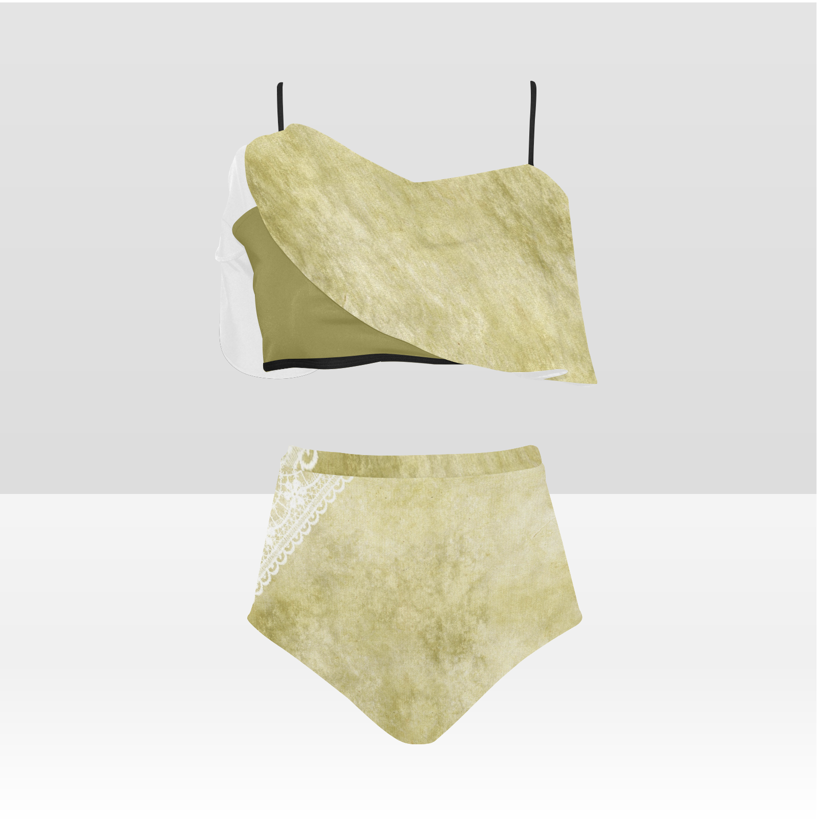 Flounce & Ruffle Bikini swimwear, Printed Victorian lace, Design 43 High Waisted Ruffle Bikini Set-A/B (Model SO3)