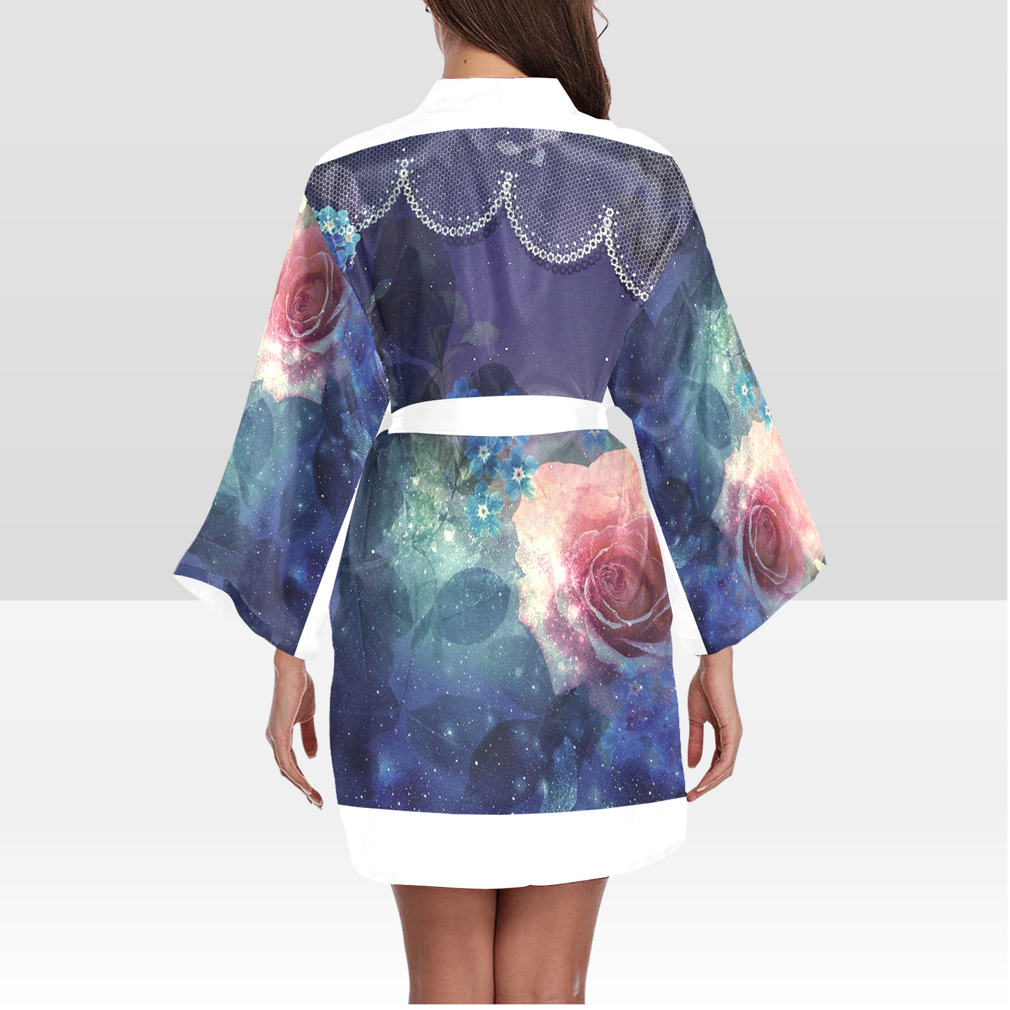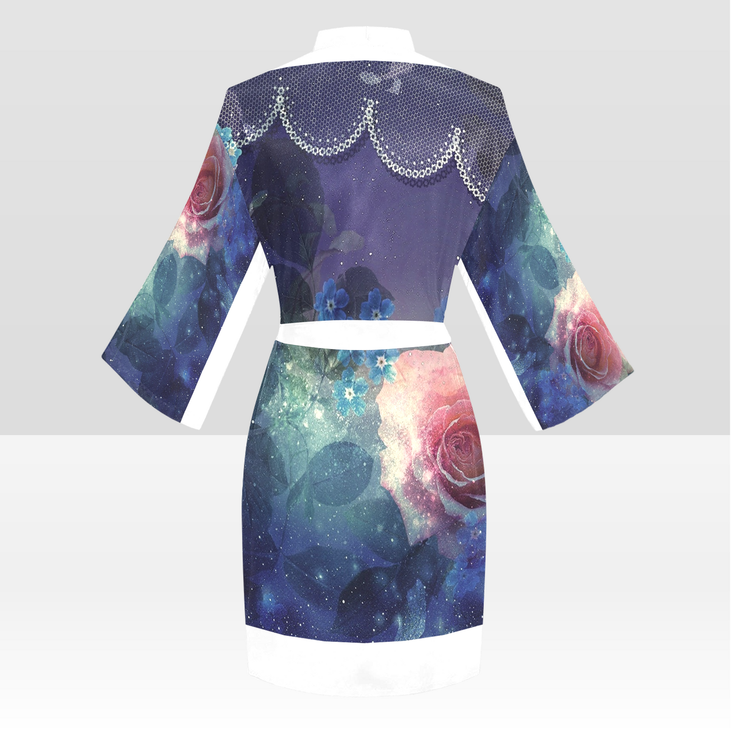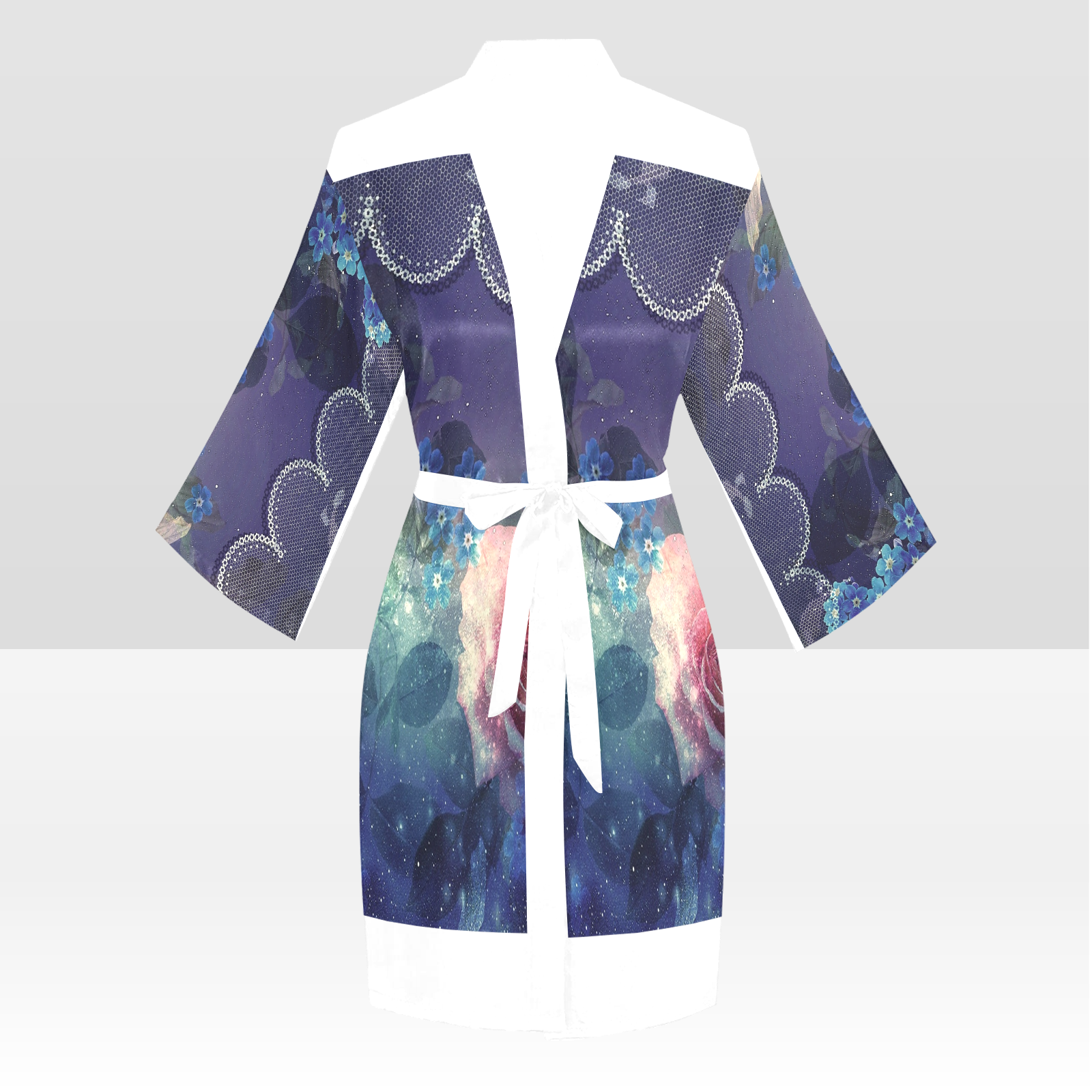 Victorian Lace Kimono Robe, Black or White Trim, Sizes XS to 2XL, Design 02