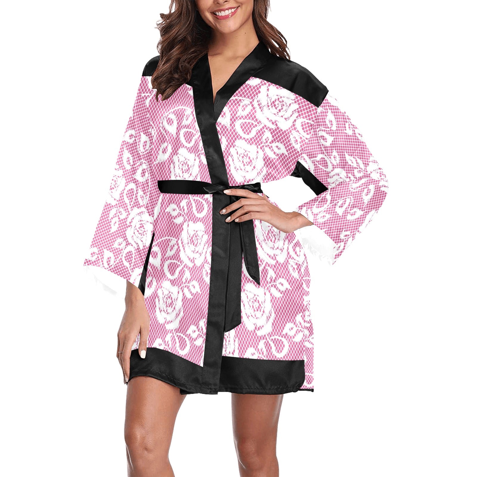 Victorian Lace Kimono Robe, Black or White Trim, Sizes XS to 2XL, Design 17