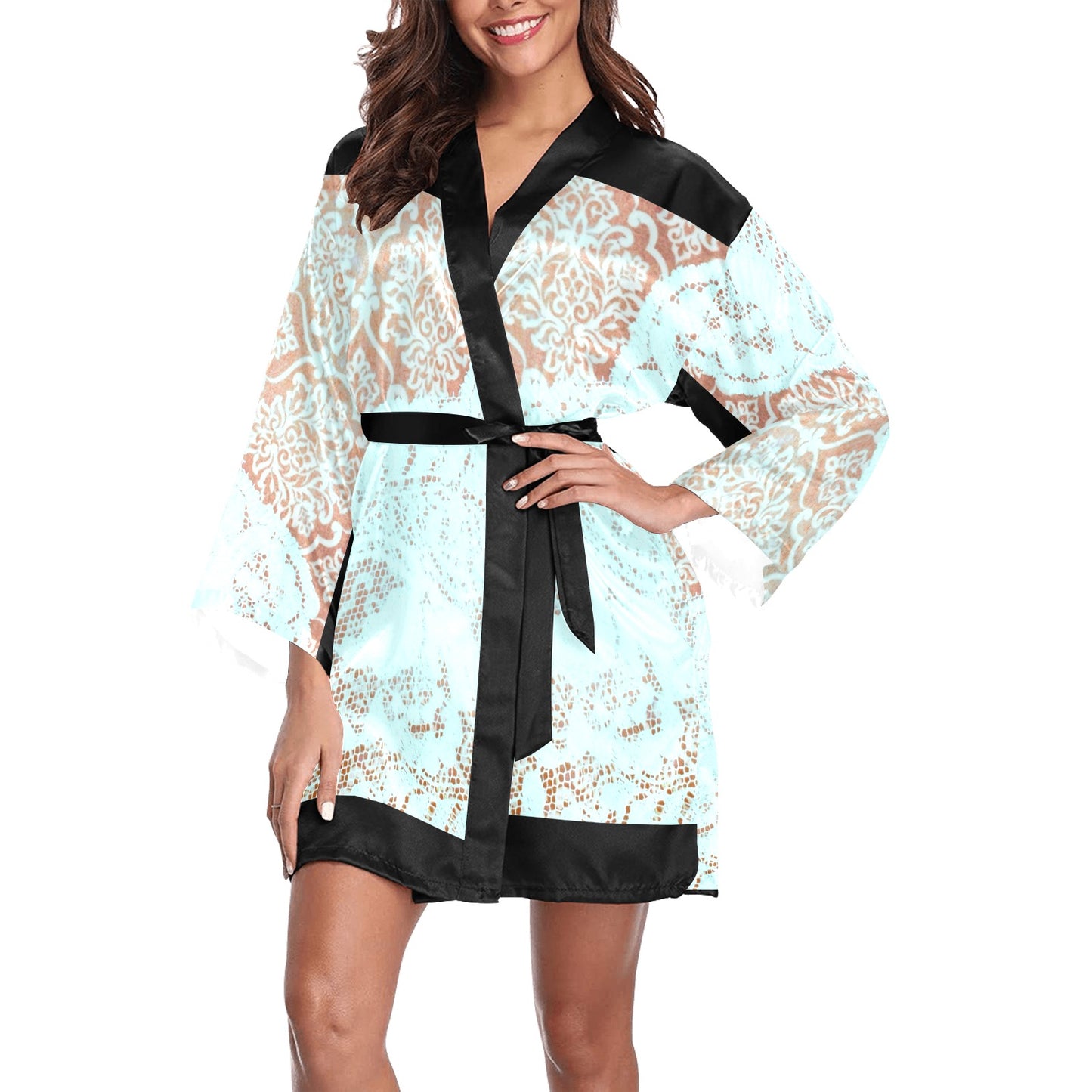 Victorian Lace Kimono Robe, Black or White Trim, Sizes XS to 2XL, Design 23