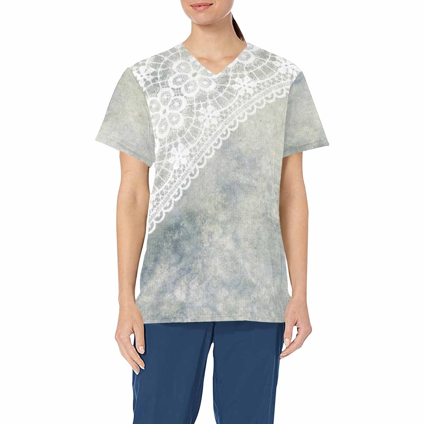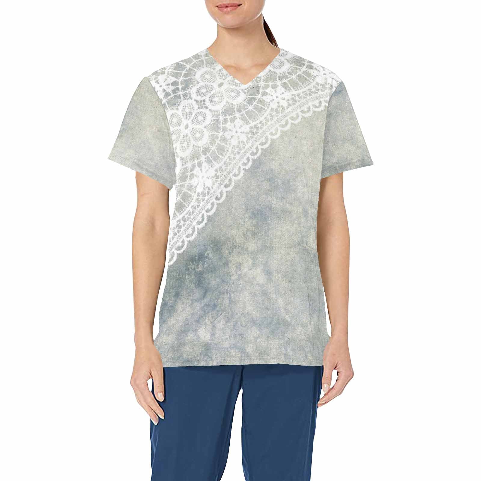 Victorian lace print professional scrubs, nurses scrub, unisex, design 36