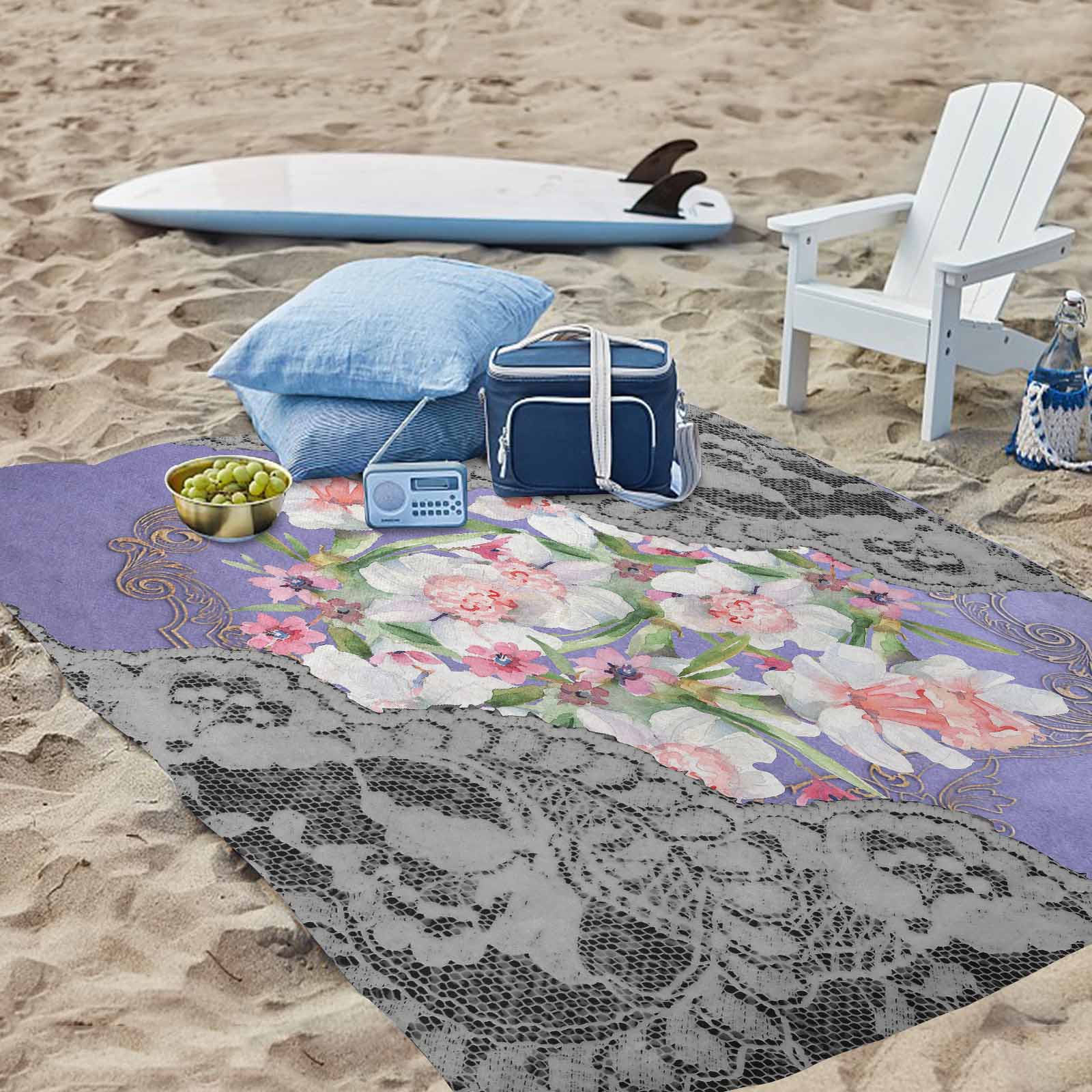 Victorian lace print waterproof picnic mat, 81 x 55in, design 45