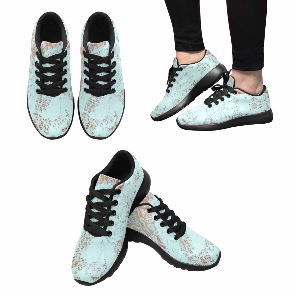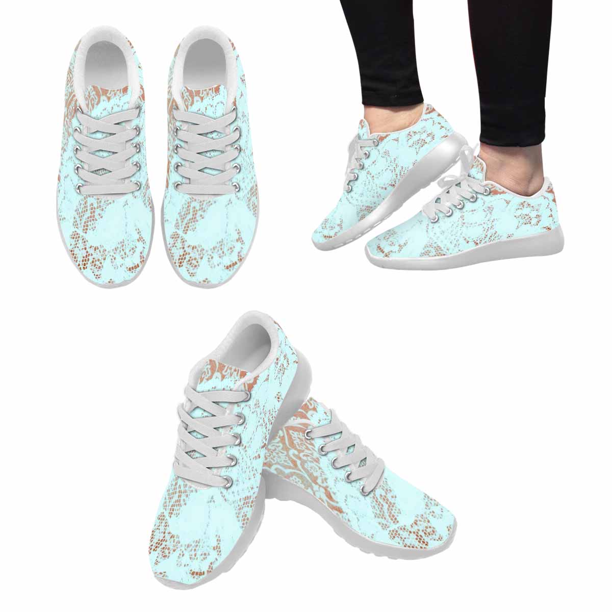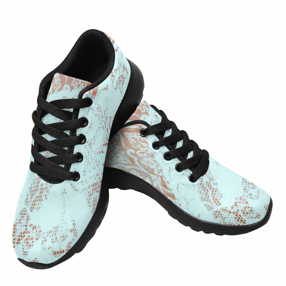 Victorian lace print, womens cute casual or running sneakers, design 23