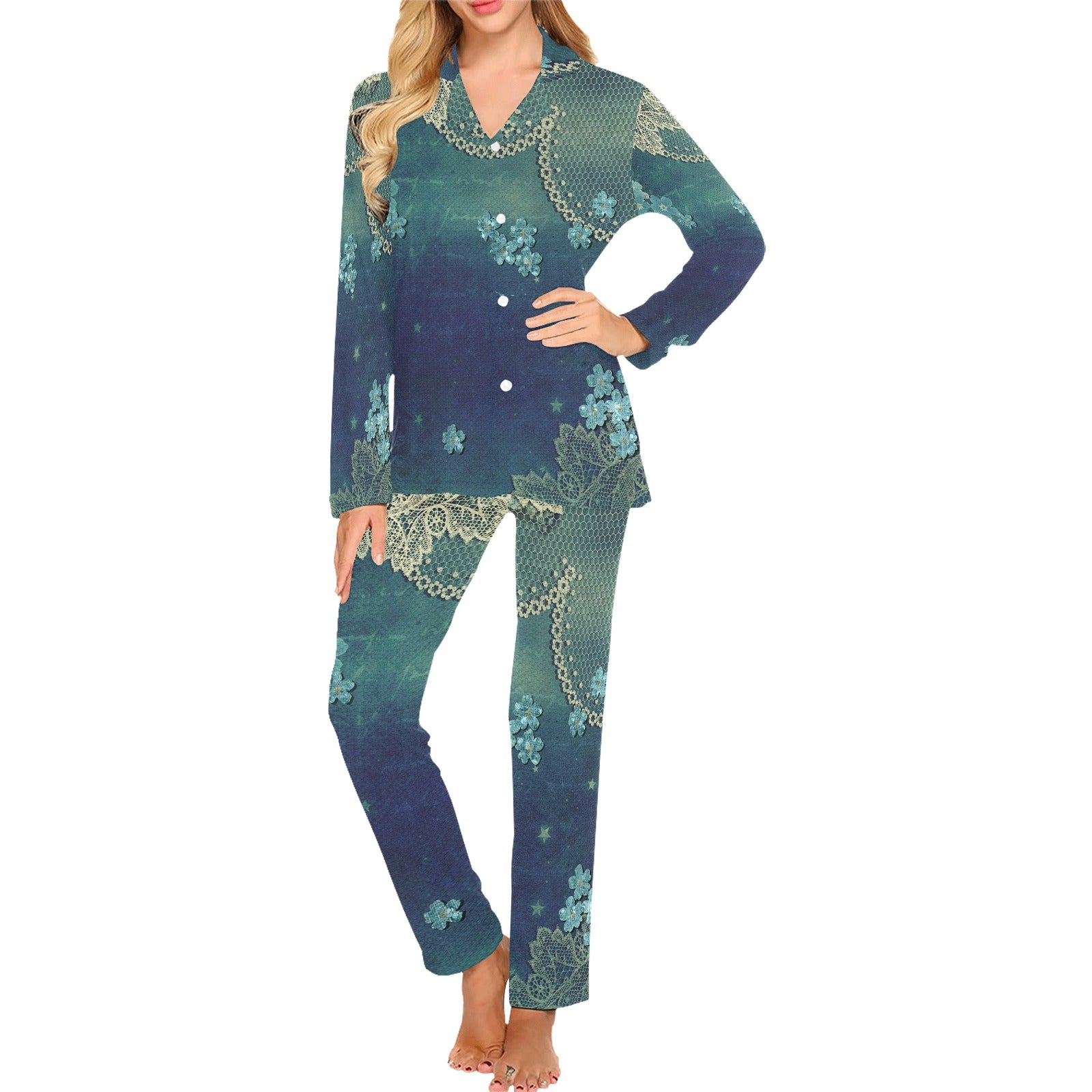 Victorian printed lace pajama set, design 04 Women's Long Pajama Set (Sets 02)