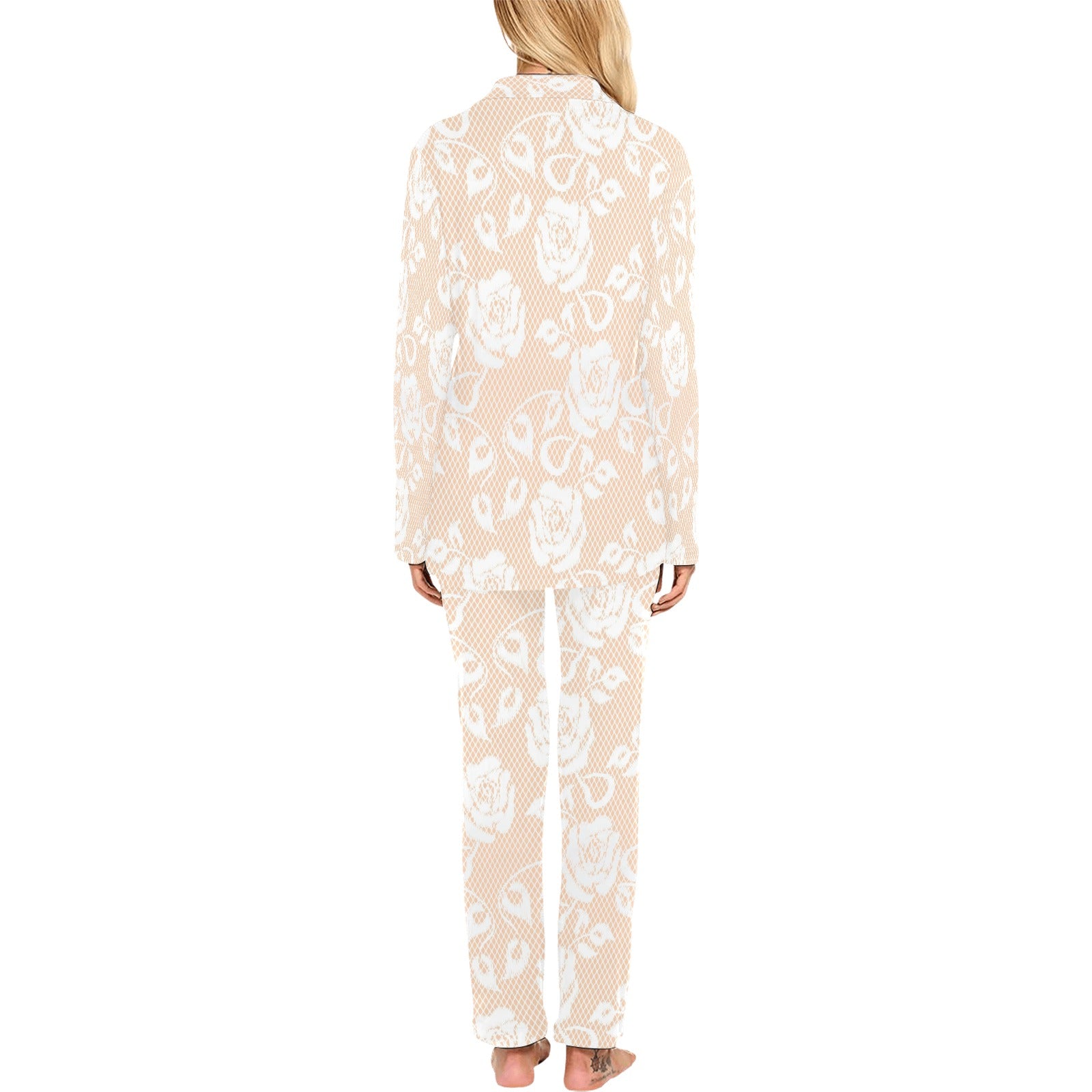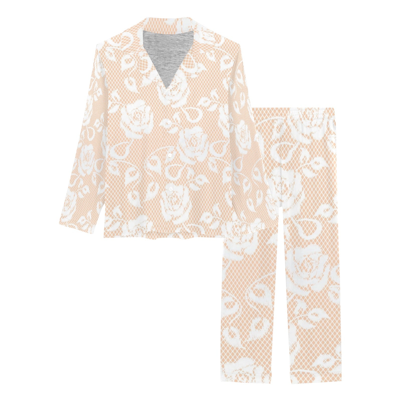 Victorian printed lace pajama set, design 16 Women's Long Pajama Set (Sets 02)
