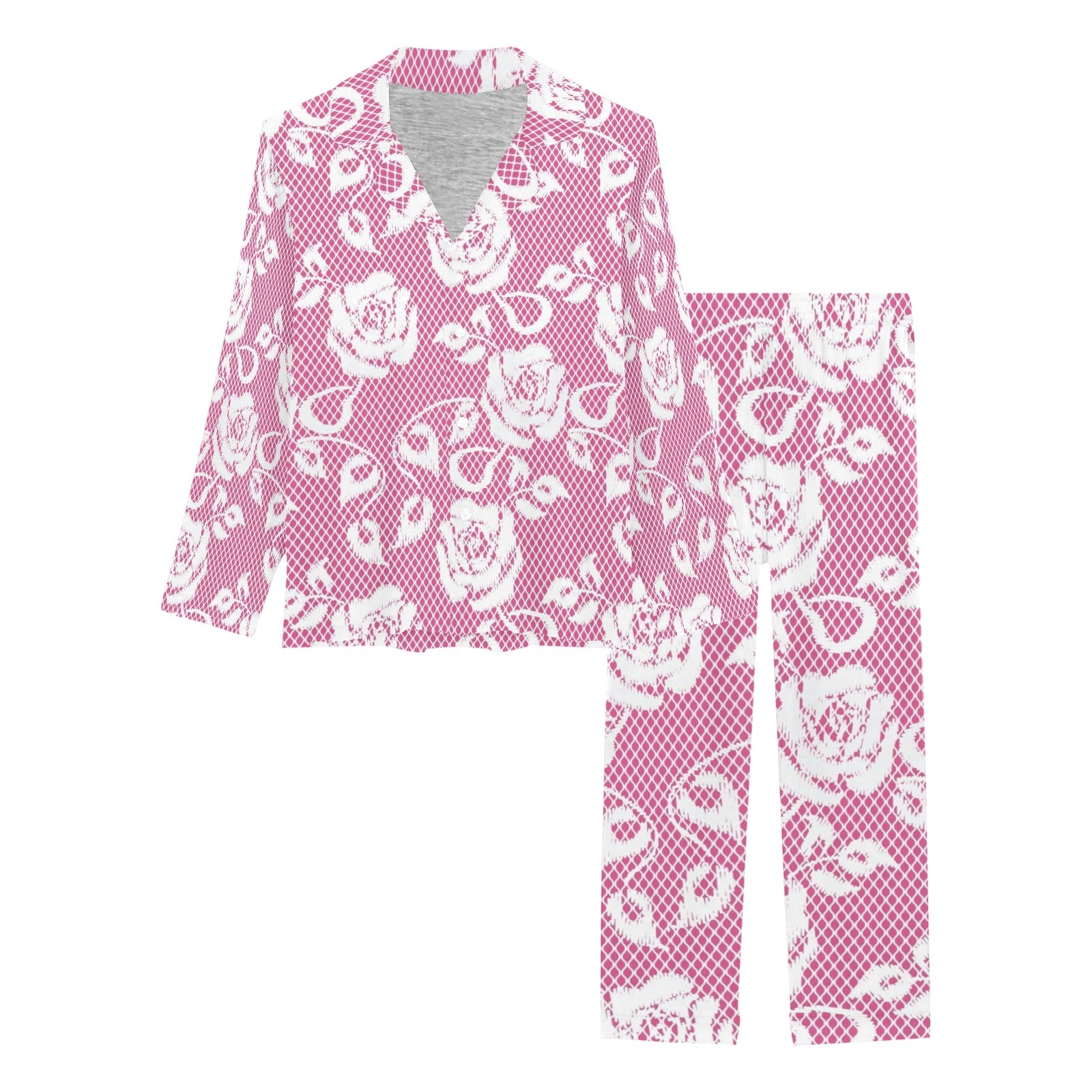 Victorian printed lace pajama set, design 17 Women's Long Pajama Set (Sets 02)