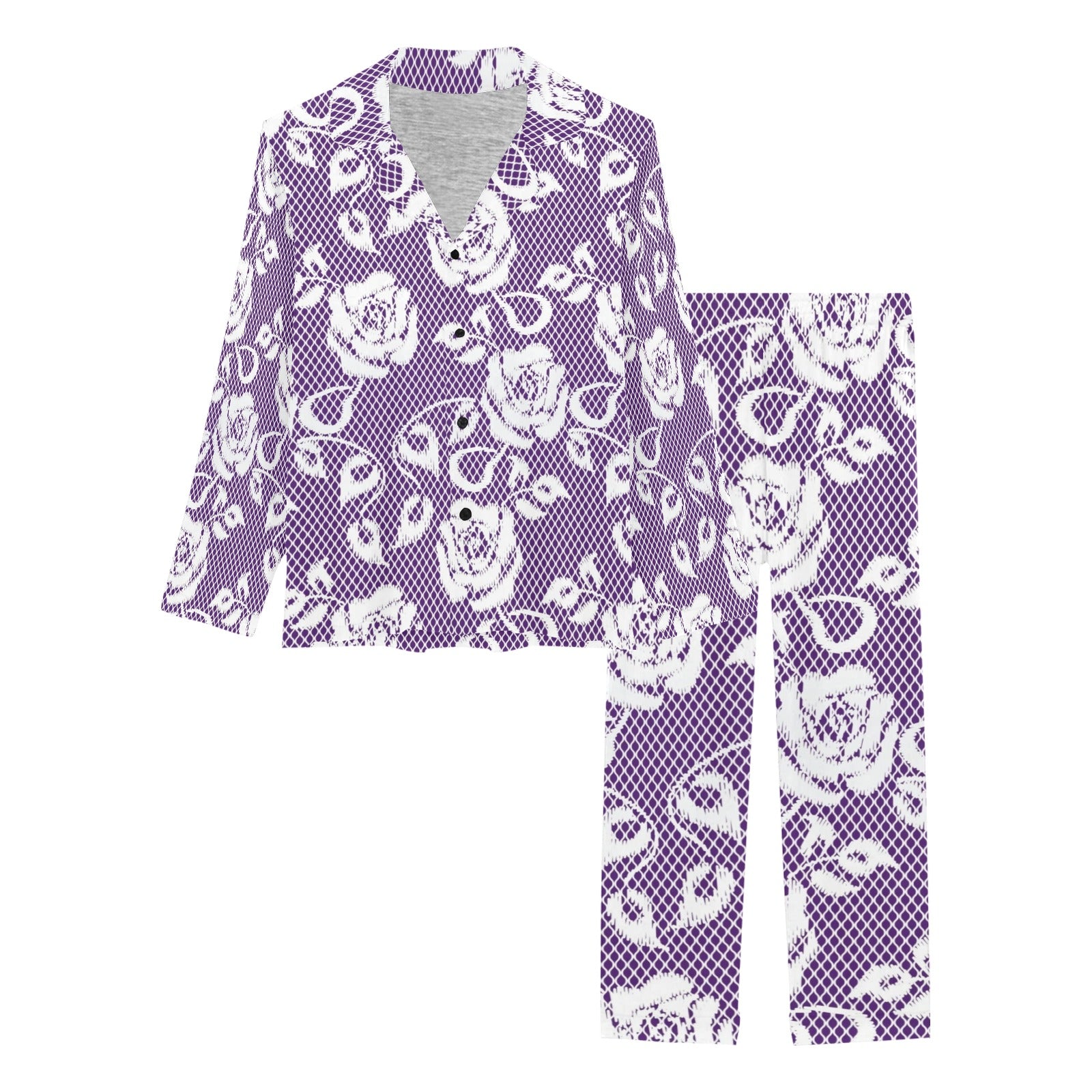 Victorian printed lace pajama set, design 18 Women's Long Pajama Set (Sets 02)