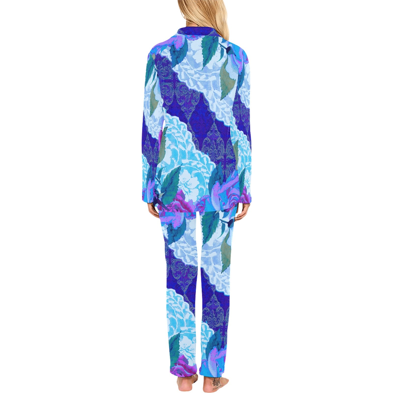 Victorian printed lace pajama set, design 20 Women's Long Pajama Set (Sets 02)