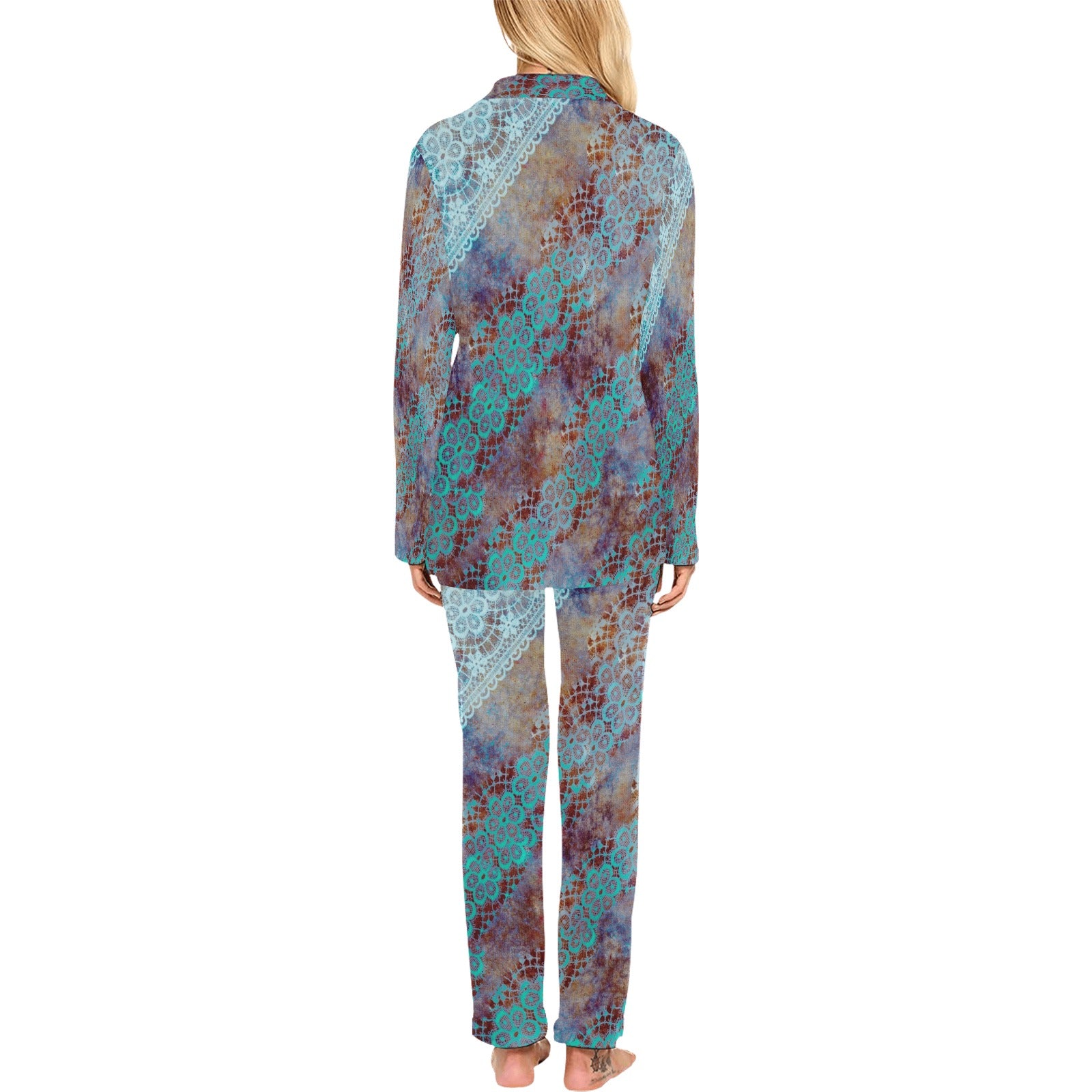 Victorian printed lace pajama set, design 37 Women's Long Pajama Set (Sets 02)