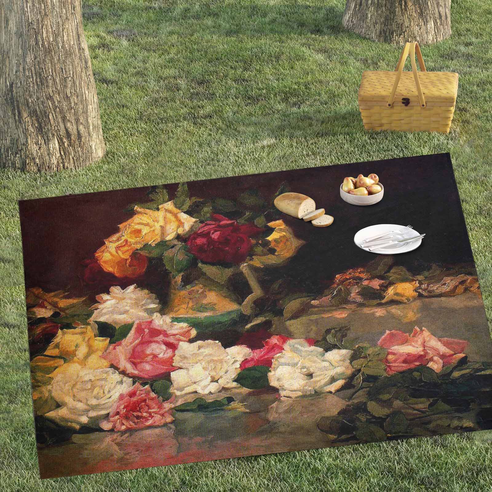 Vintage Floral waterproof picnic mat, 81 x 55in, Design 37