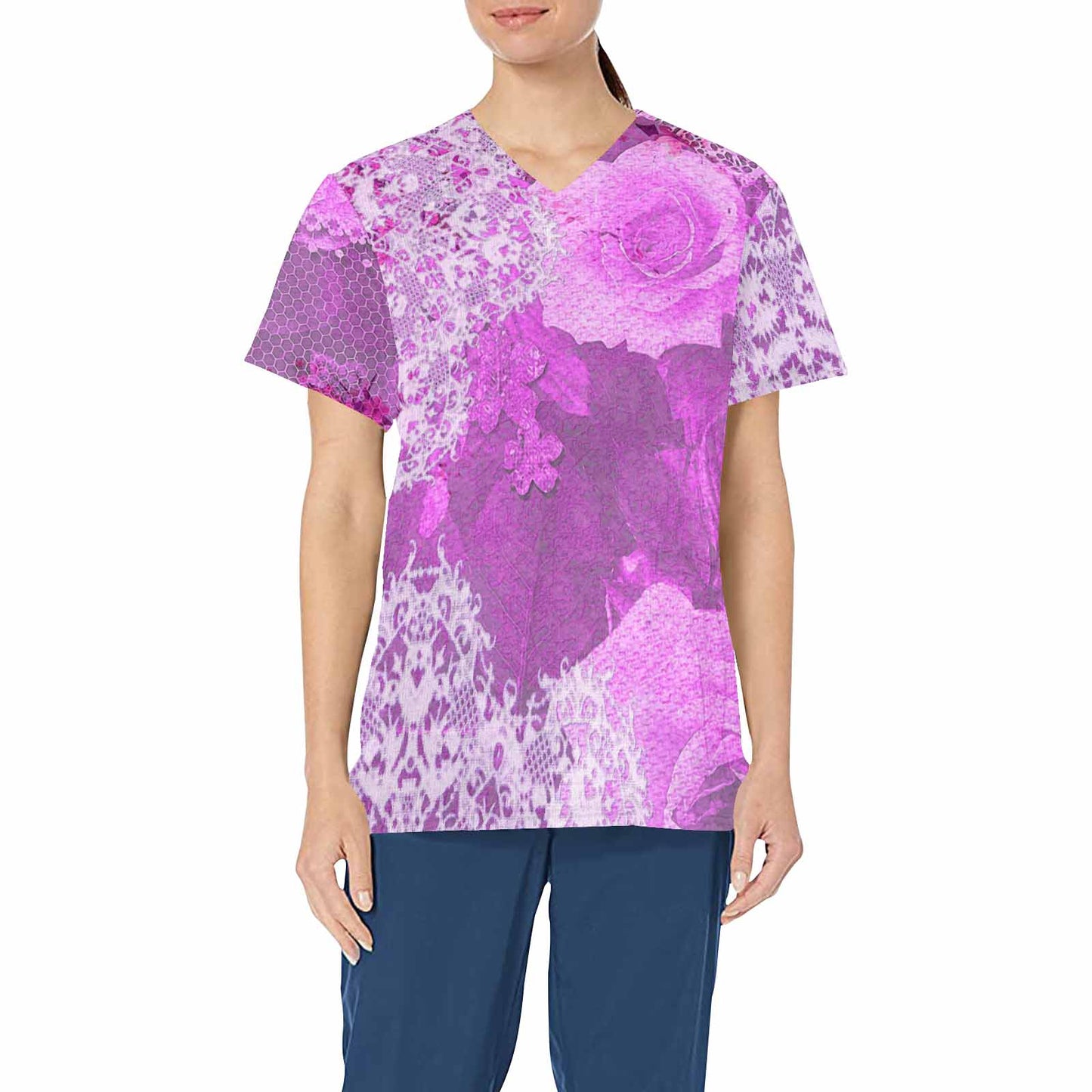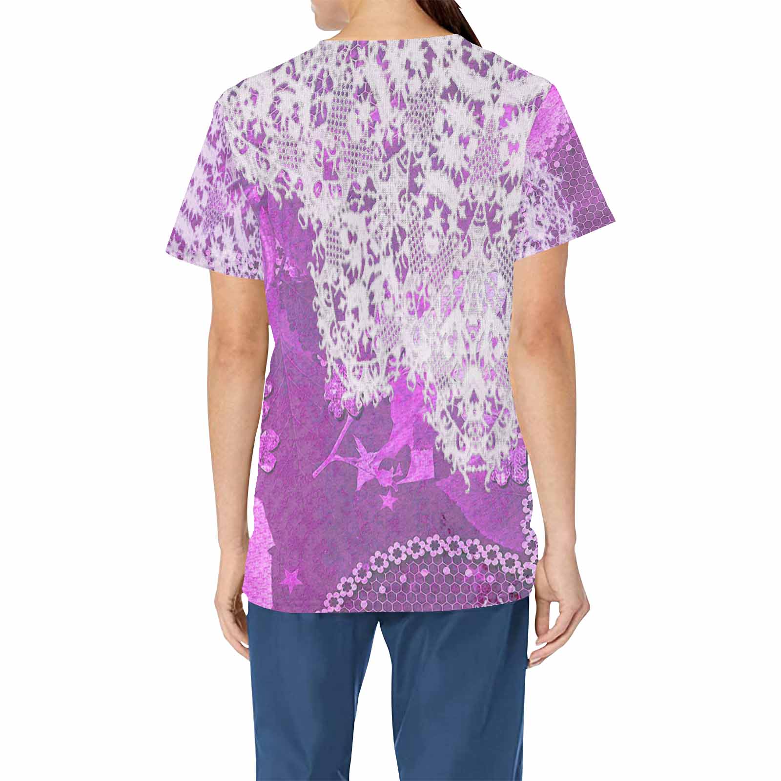 Victorian lace print professional scrubs, nurses scrub, unisex, design 03