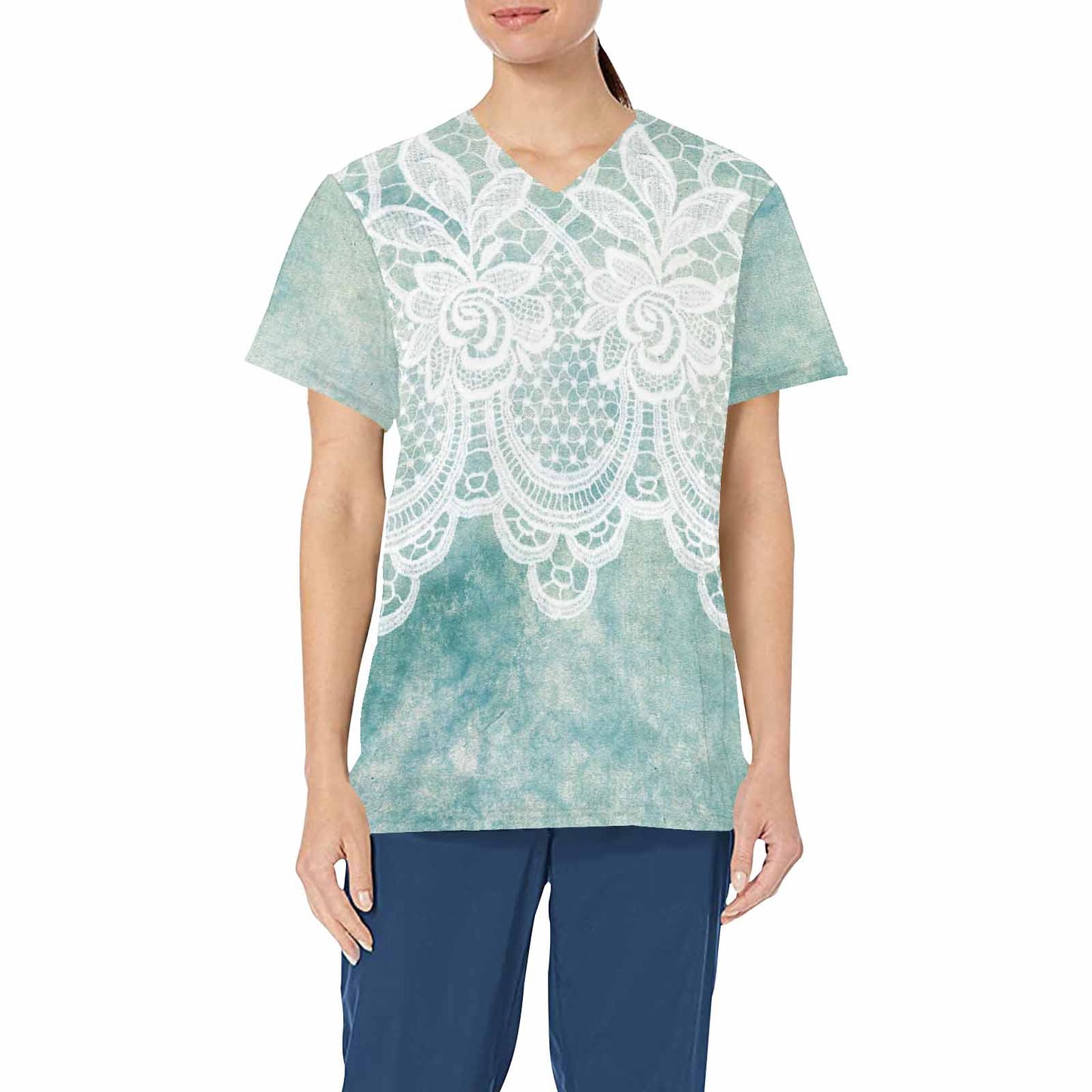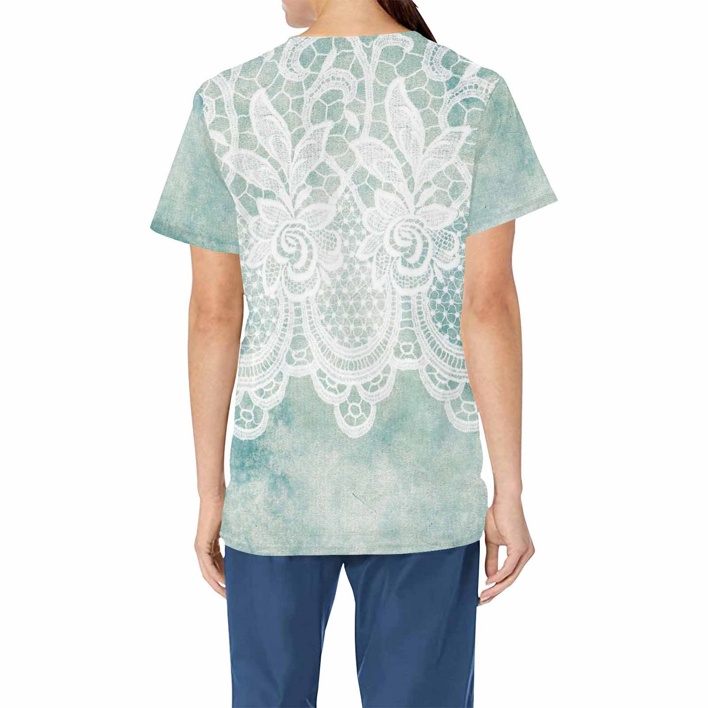 Victorian lace print professional scrubs, nurses scrub, unisex, design 41