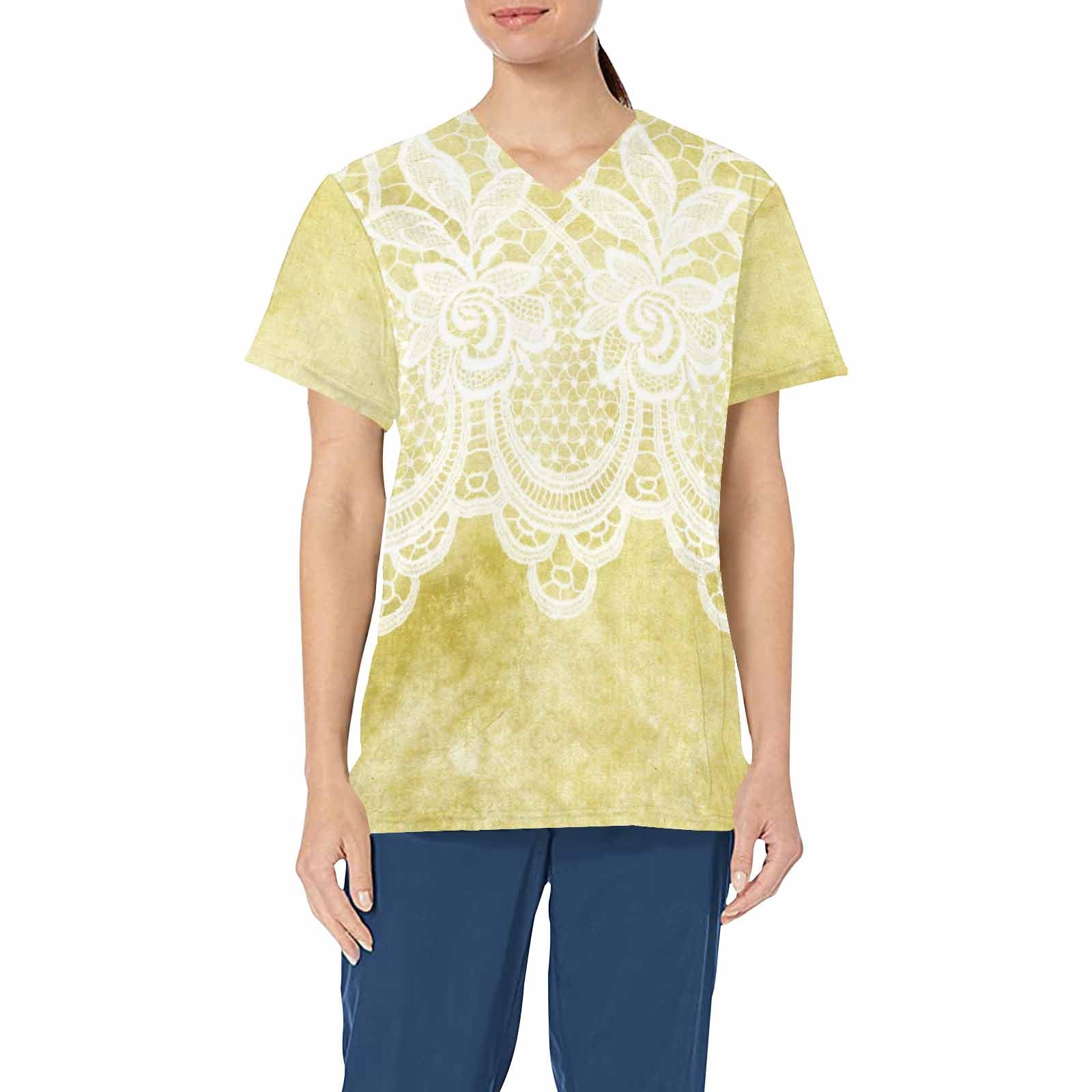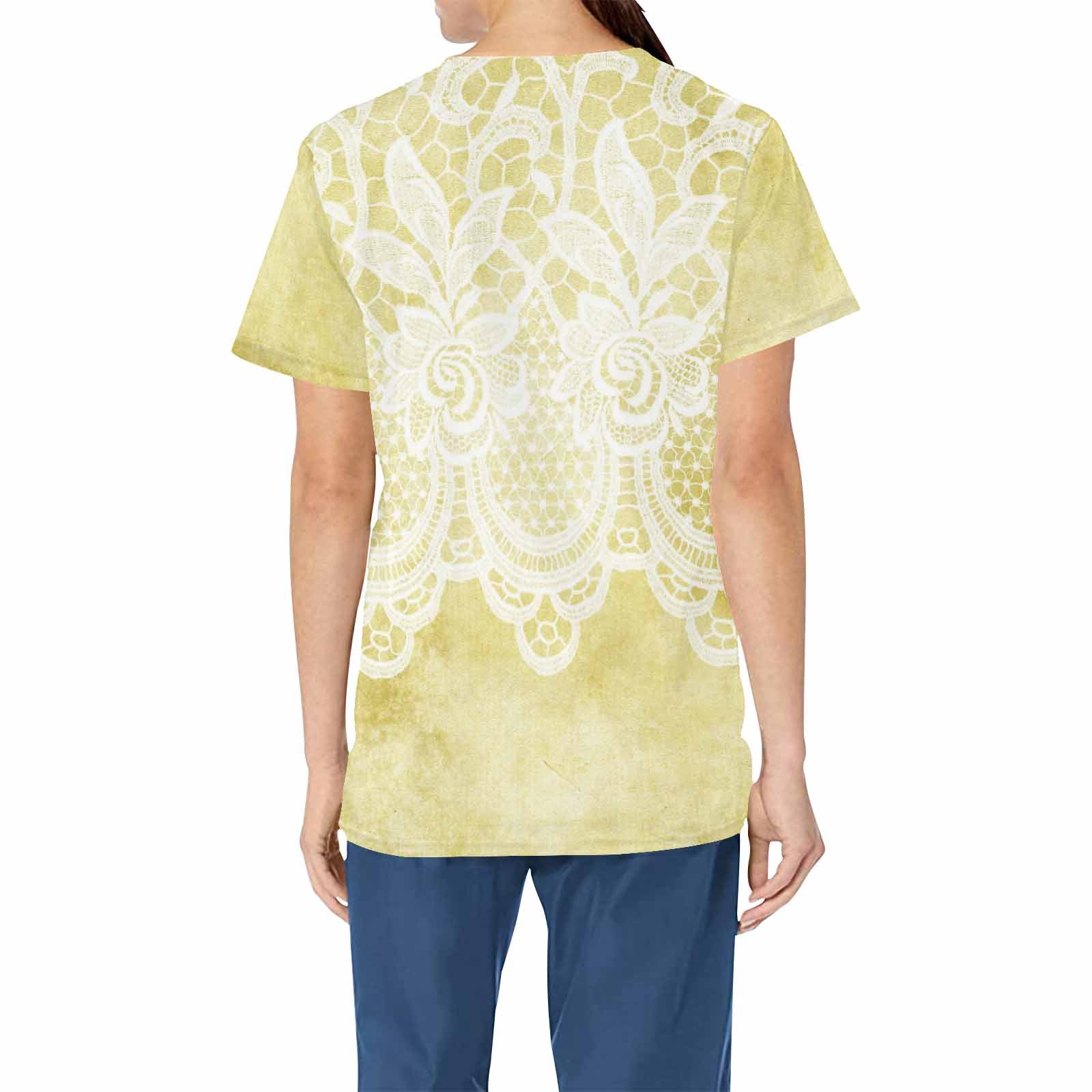 Victorian lace print professional scrubs, nurses scrub, unisex, design 44