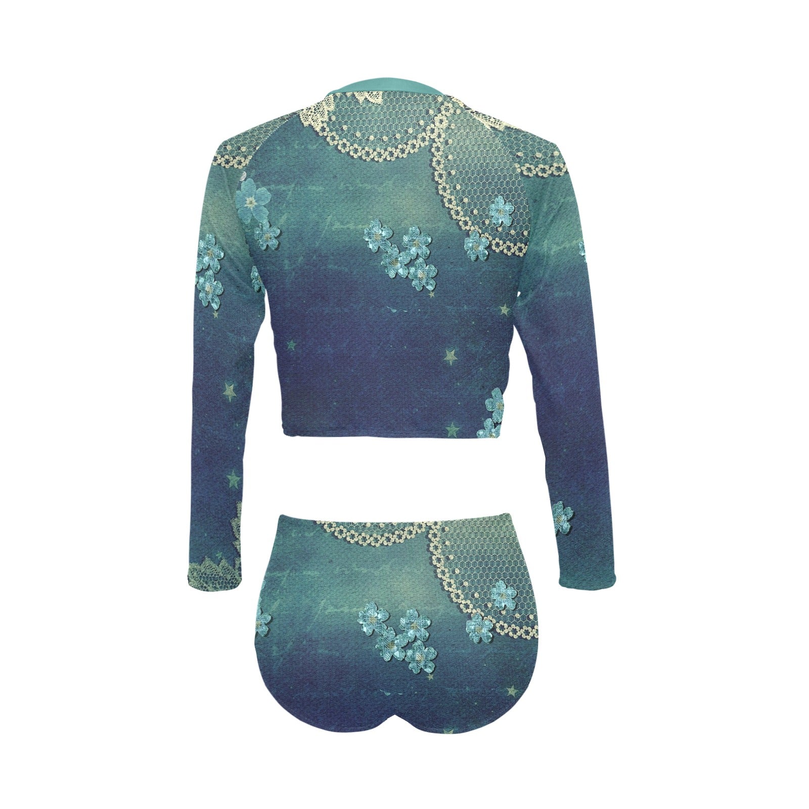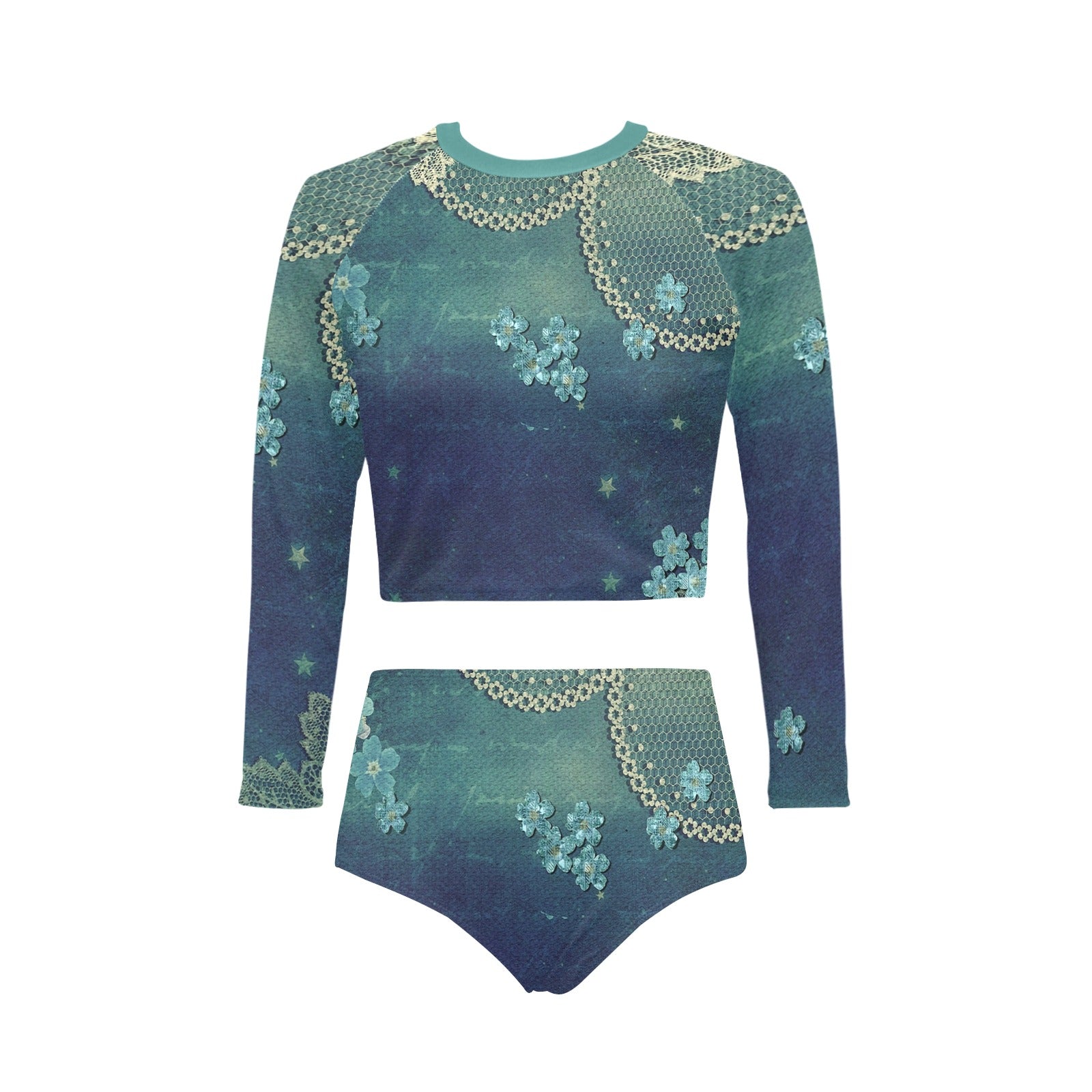 Victorian printed lace, long sleeve 2pc swimsuit, beachwear, design 04 Long Sleeve Bikini Set (Model S27)