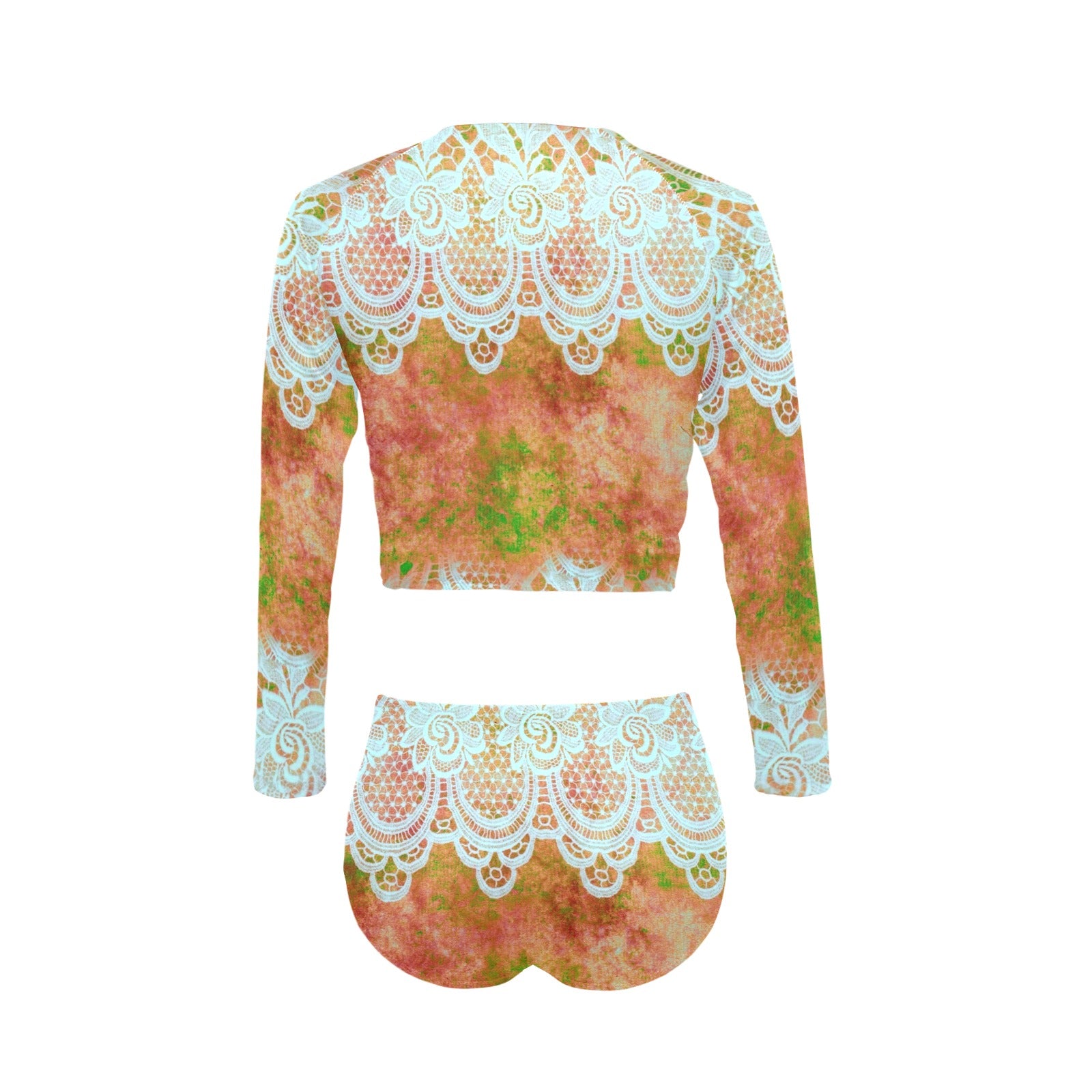 Victorian printed lace, long sleeve 2pc swimsuit, beachwear, design 31 Long Sleeve Bikini Set (Model S27)