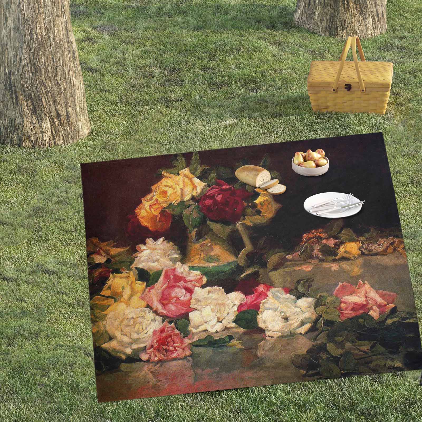 Vintage Floral waterproof picnic mat, 61 x 55in, Design 37