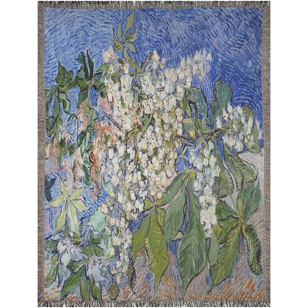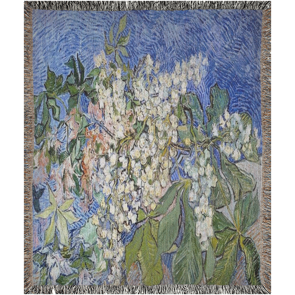 Woven throw blankets utilize solid colored yarn combined with black and white yarn to create image. This type printing is nice for the somewhat faded looks as antique vintage art design should look.