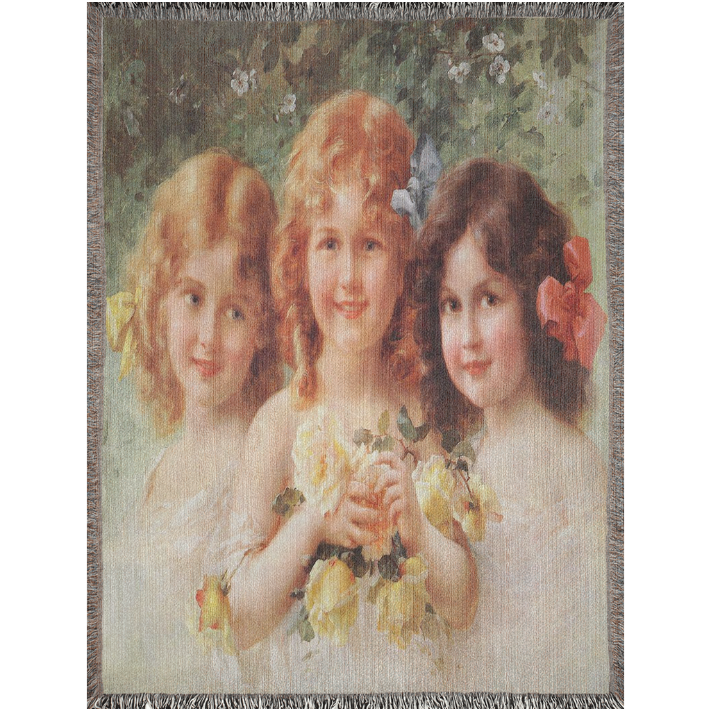 100% cotton Victorian Girls design woven blanket, 50 x 60 or 60 x 80in, THREE SISTERS