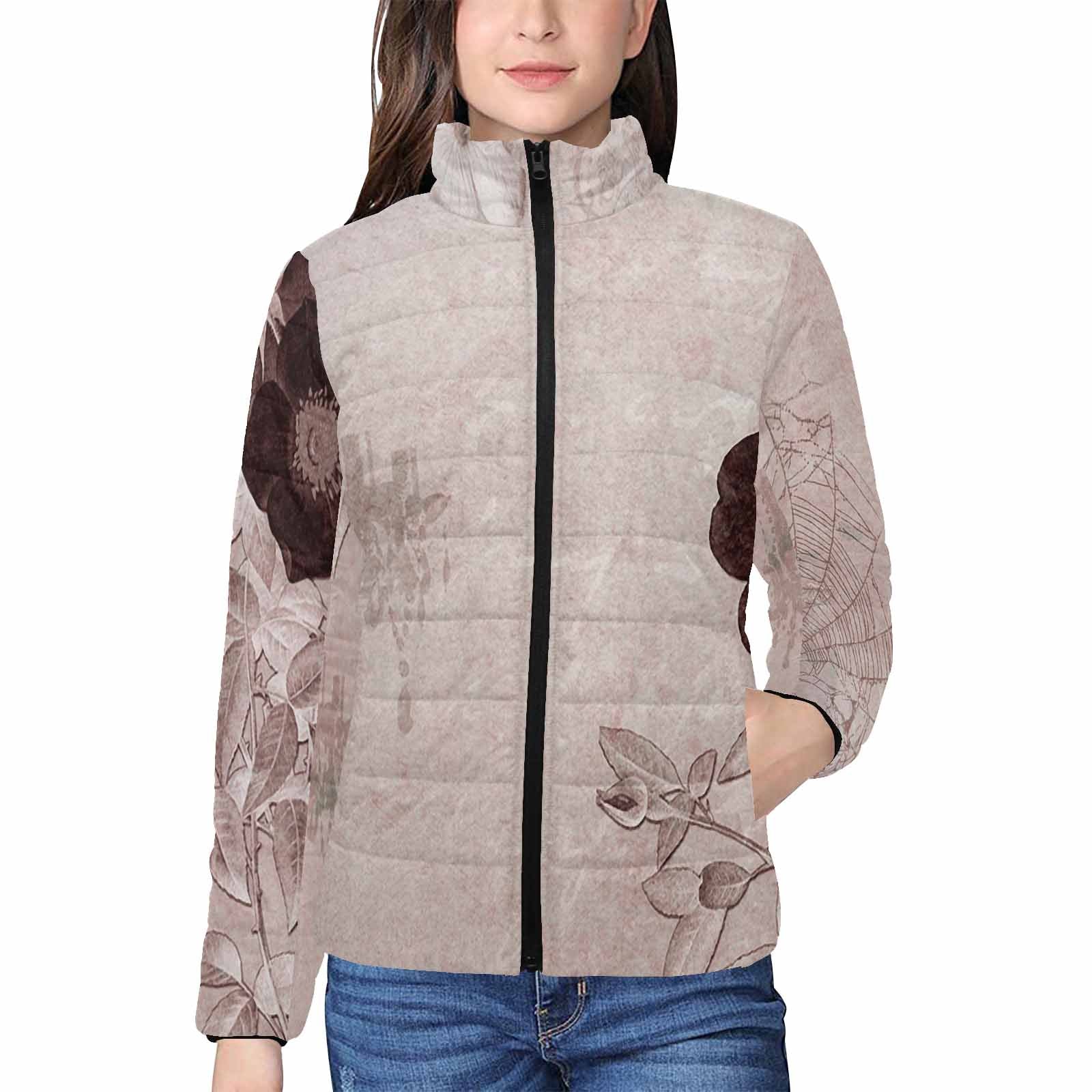 - Quilted bomber jacket with zipper closure and elastic cuffs provides maximum comfort.