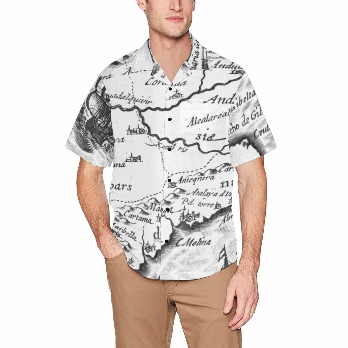 Antique Map design Hawaiian mens shirt, Design 23
