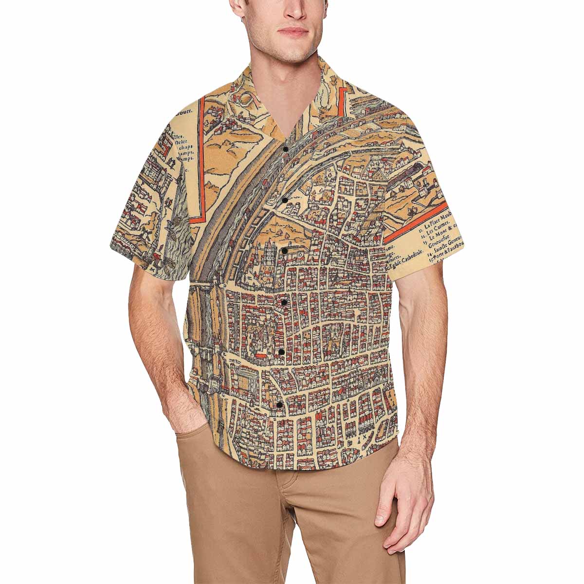 Antique Map design Hawaiian mens shirt, Design 49