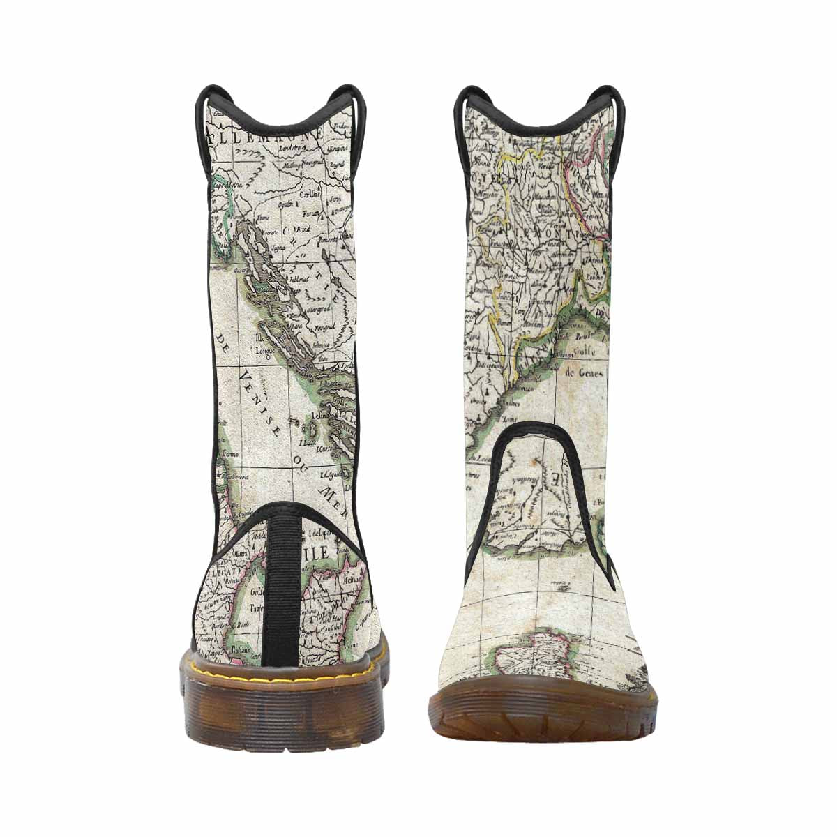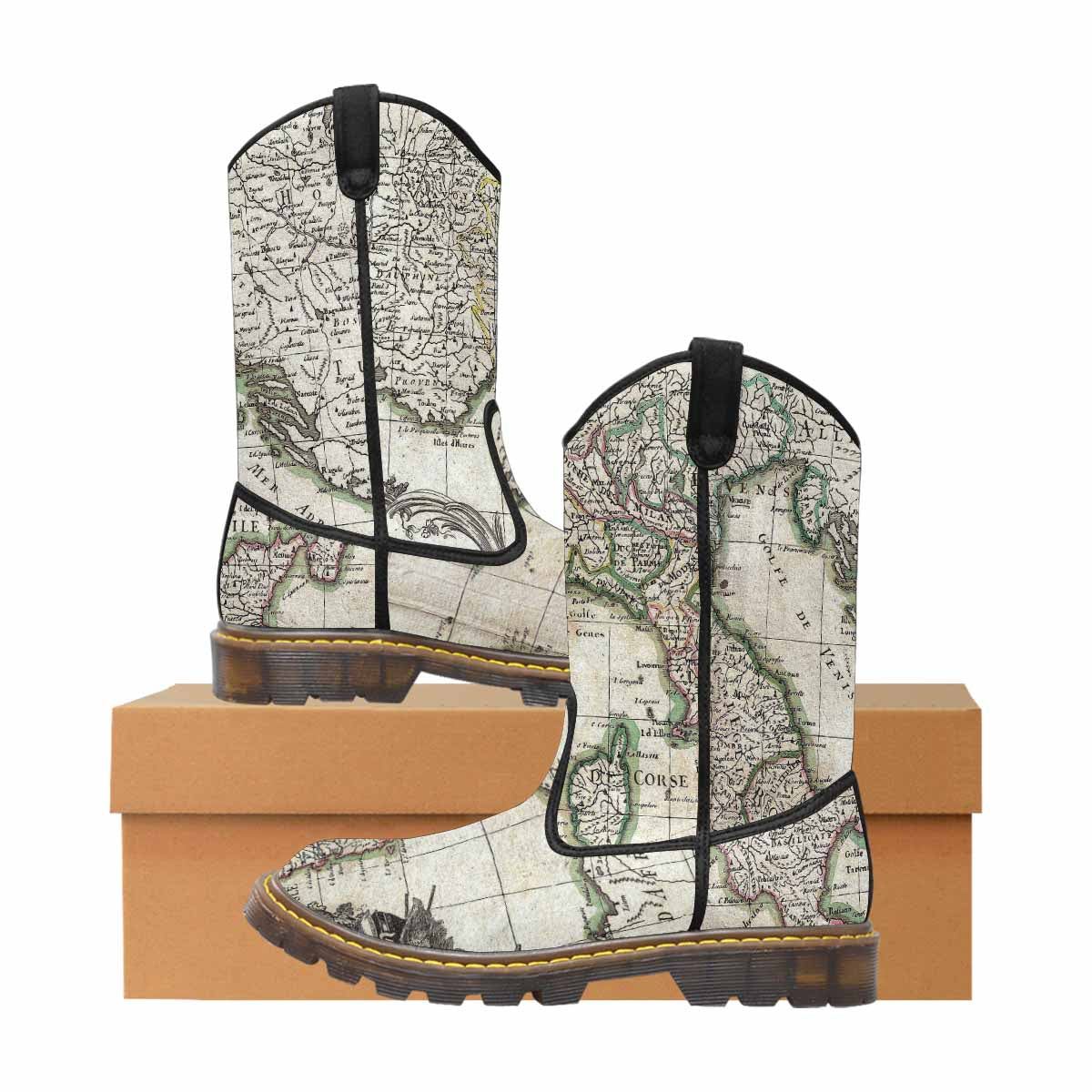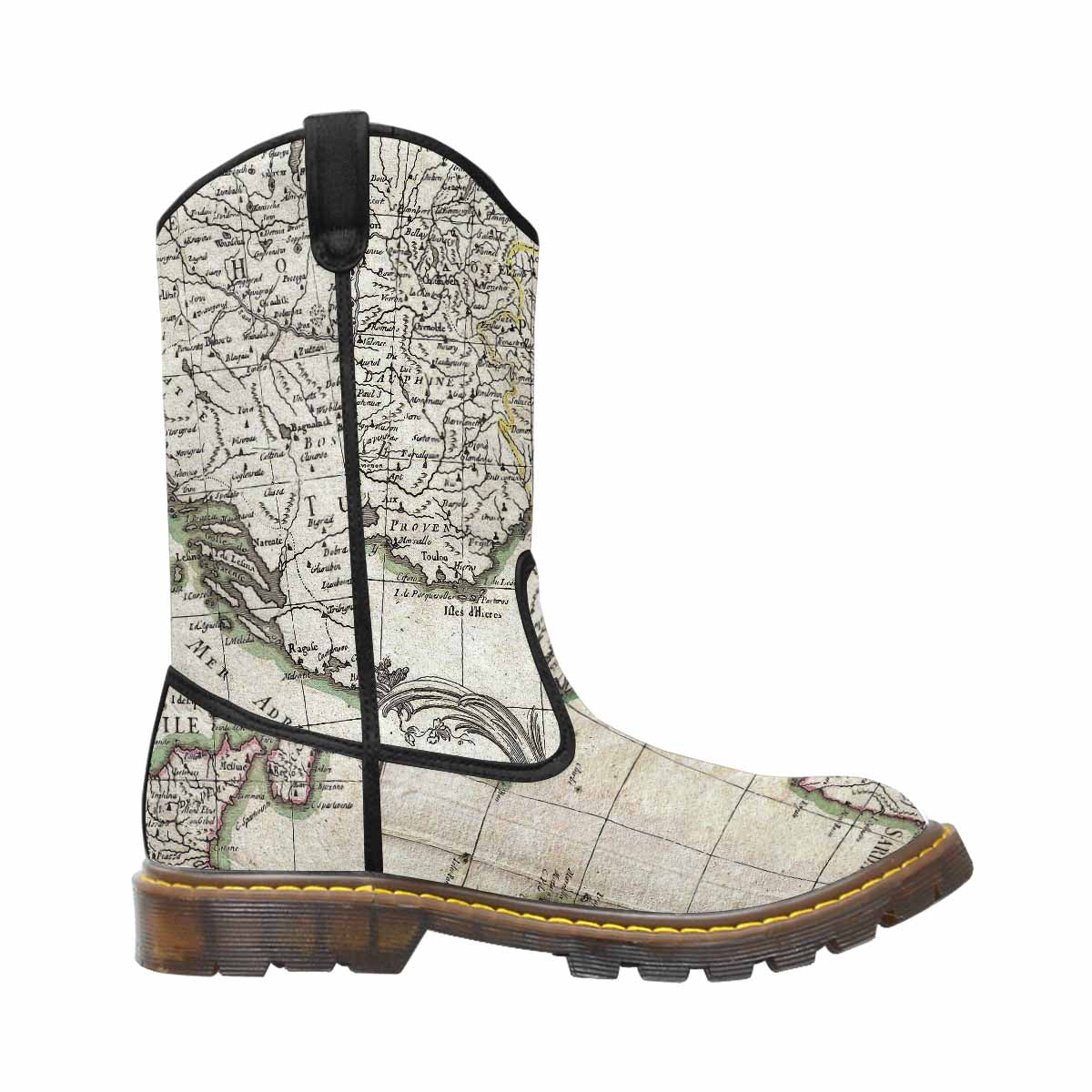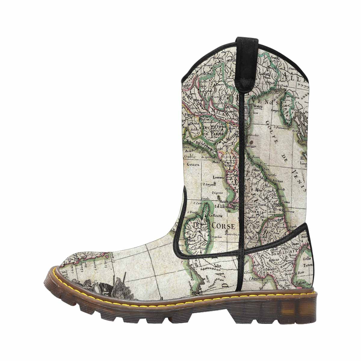 Antique Map design mens western lumber boots, Design 6
