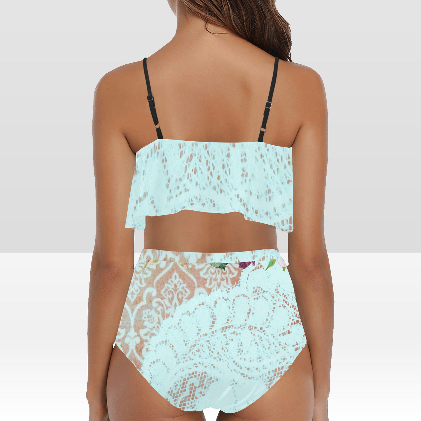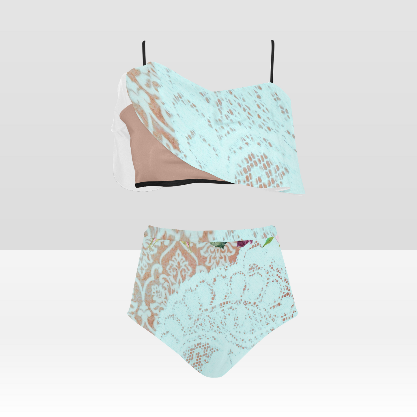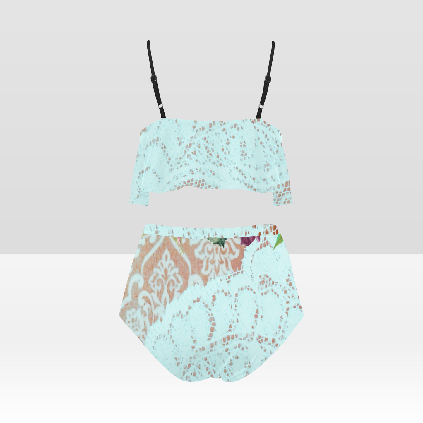 Flounce & Ruffle Bikini swimwear, Printed Victorian lace, Design 24 High Waisted Ruffle Bikini Set-A/B (Model SO3)