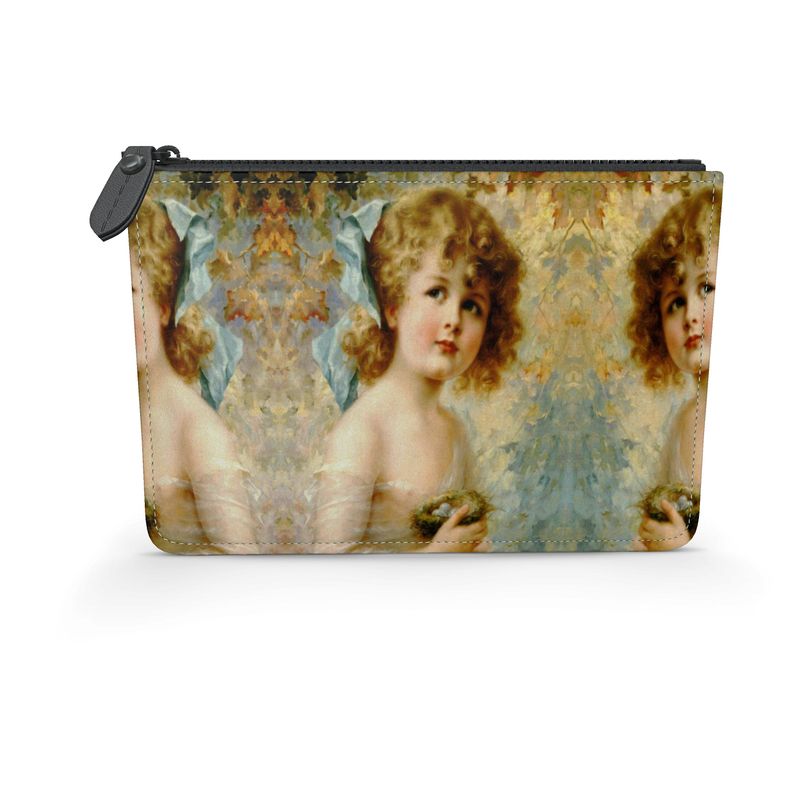 Victorian Girl design print, design Girl Holding a Nest, 100% luxury Leather Pouch
