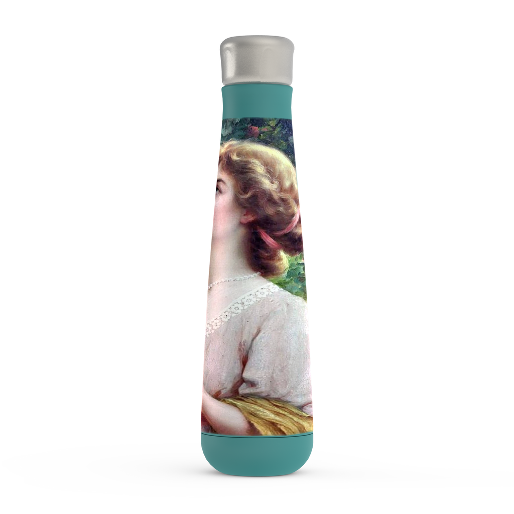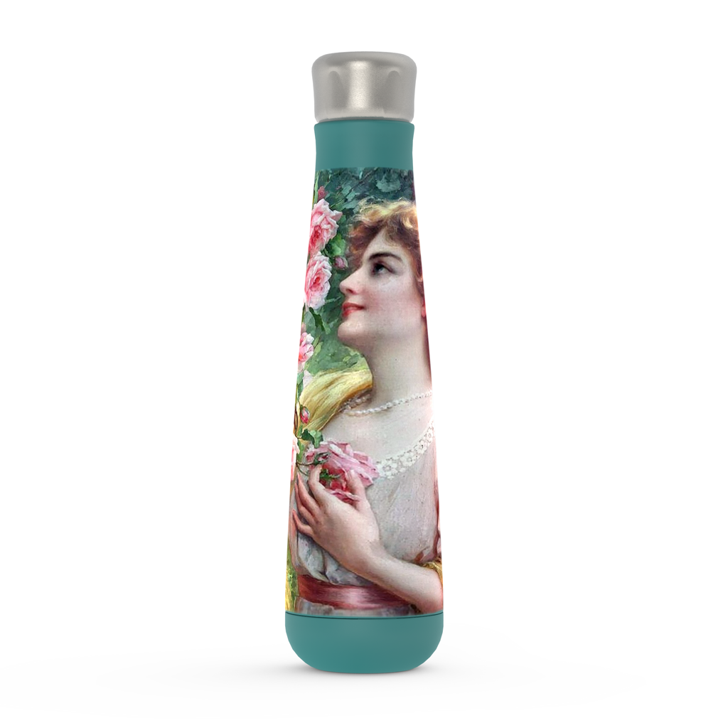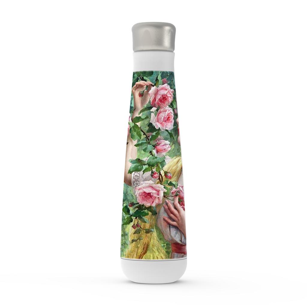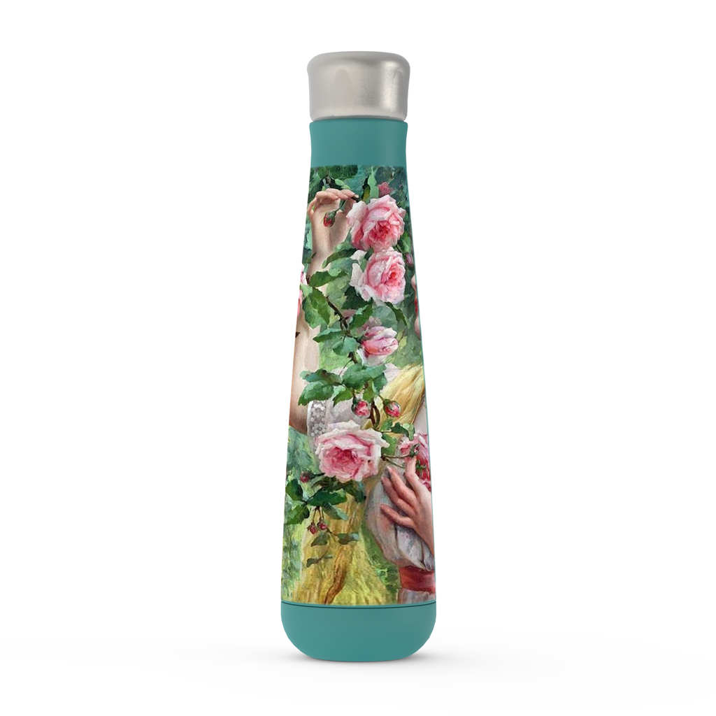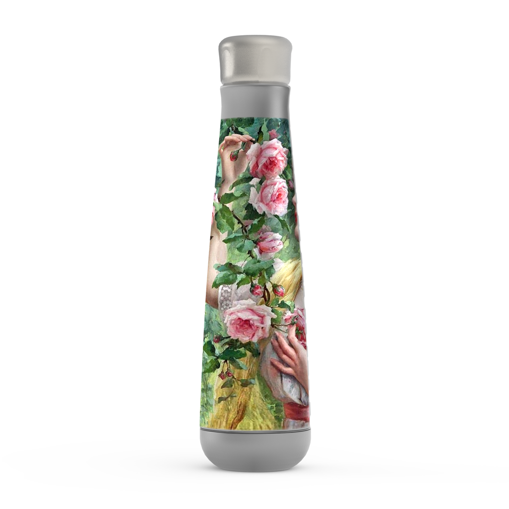 Stainless steel water bottle, Peristyle, Various colors, lady picking pink rose