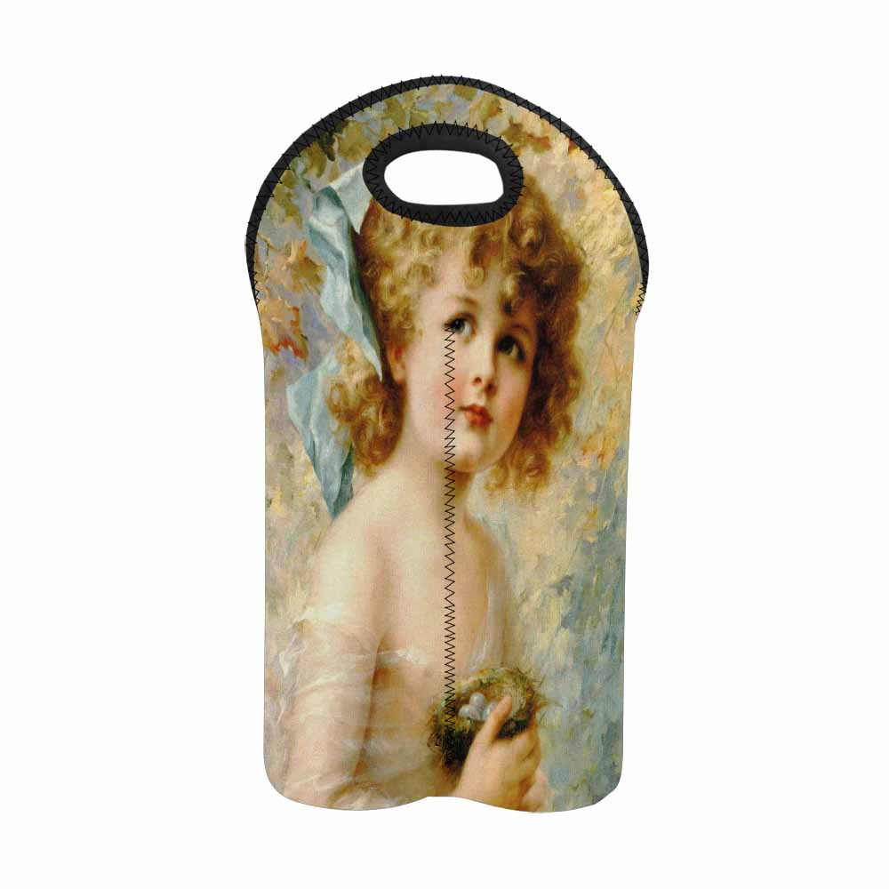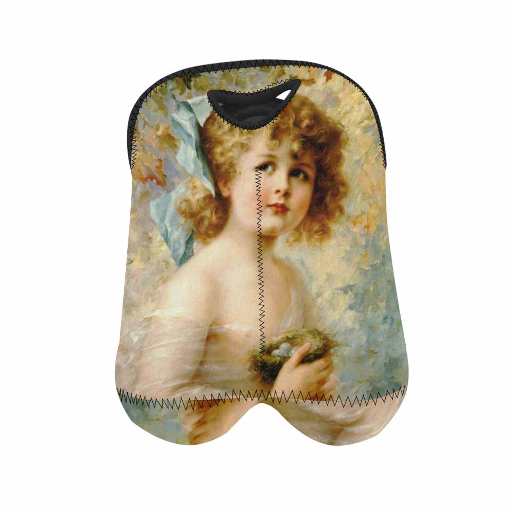 Victorian girl design 2 Bottle wine bag, Girl Holding a Nest