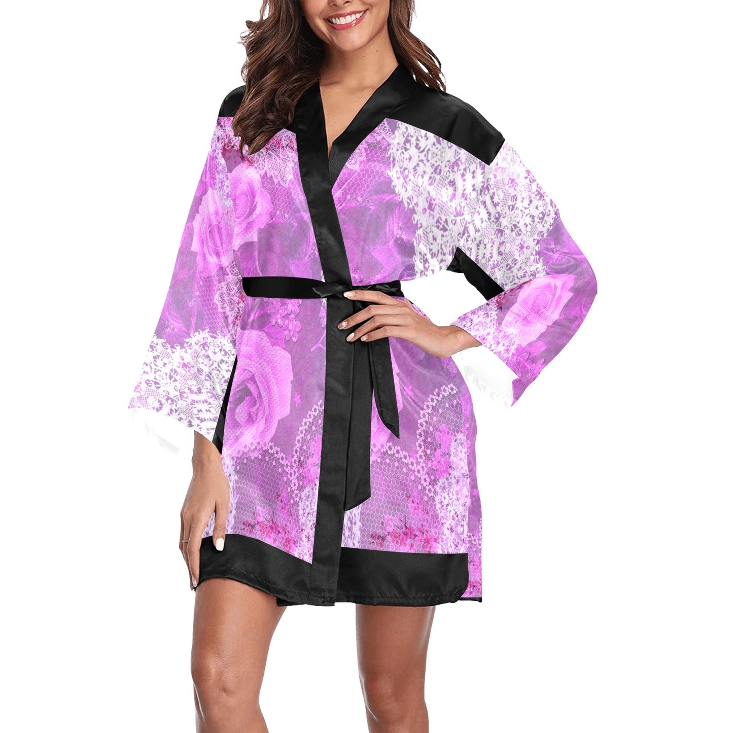 Victorian Lace Kimono Robe, Black or White Trim, Sizes XS to 2XL, Design 03