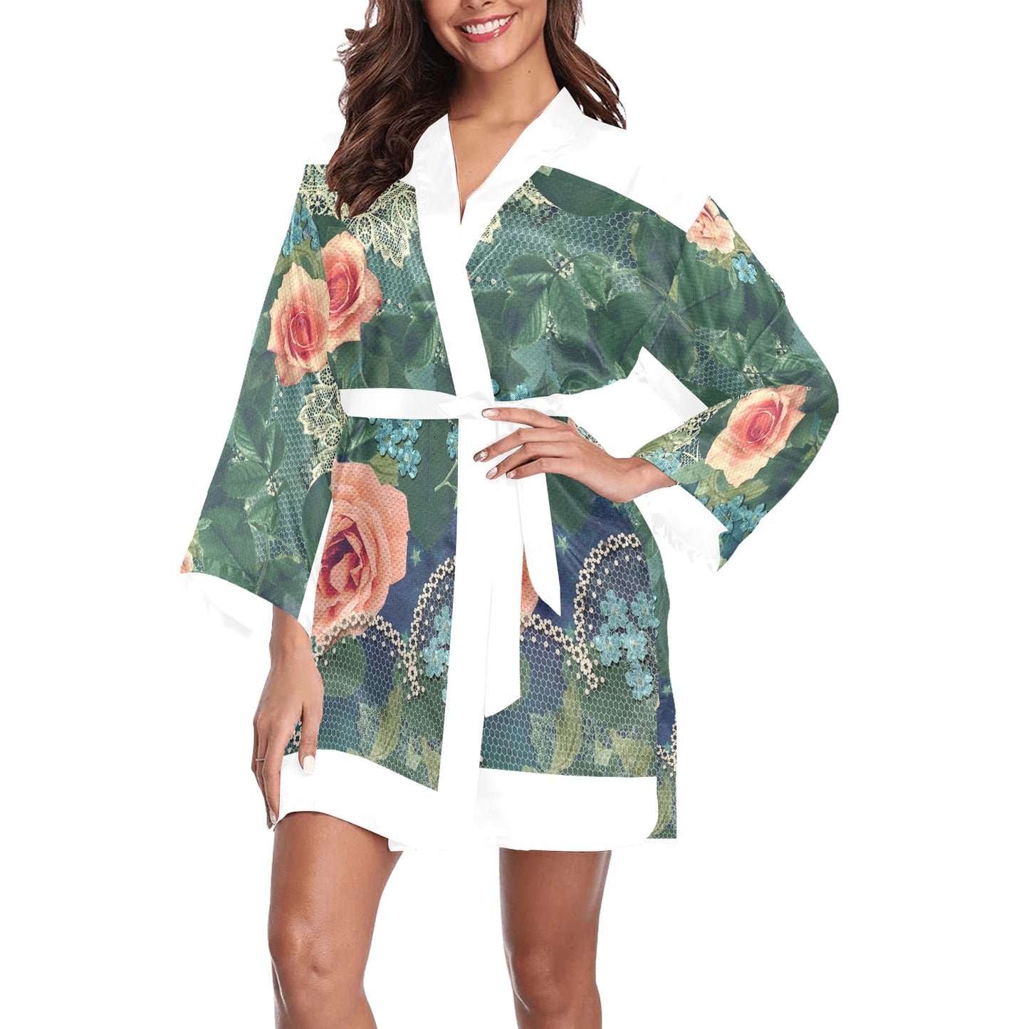 Victorian Lace Kimono Robe, Black or White Trim, Sizes XS to 2XL, Design 01