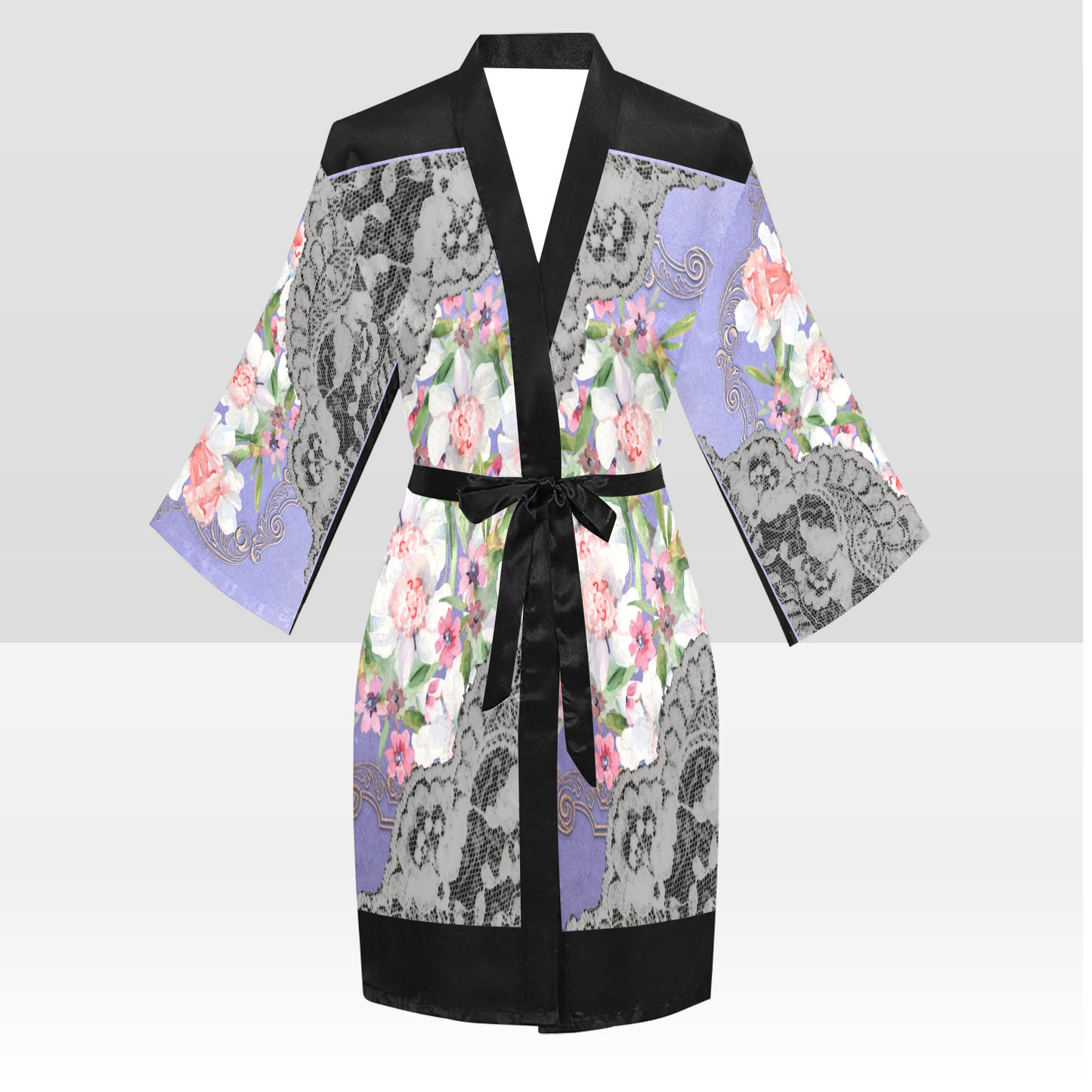 Victorian Lace Kimono Robe, Black or White Trim, Sizes XS to 2XL, Design 45