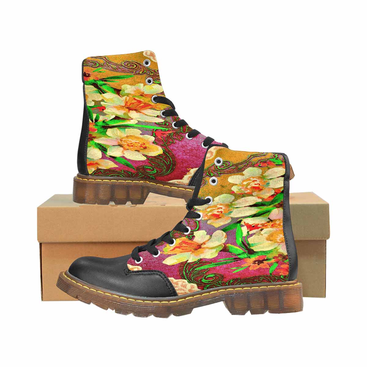 Victorian lace print, cute but tough, Winter walk about boots, design 48