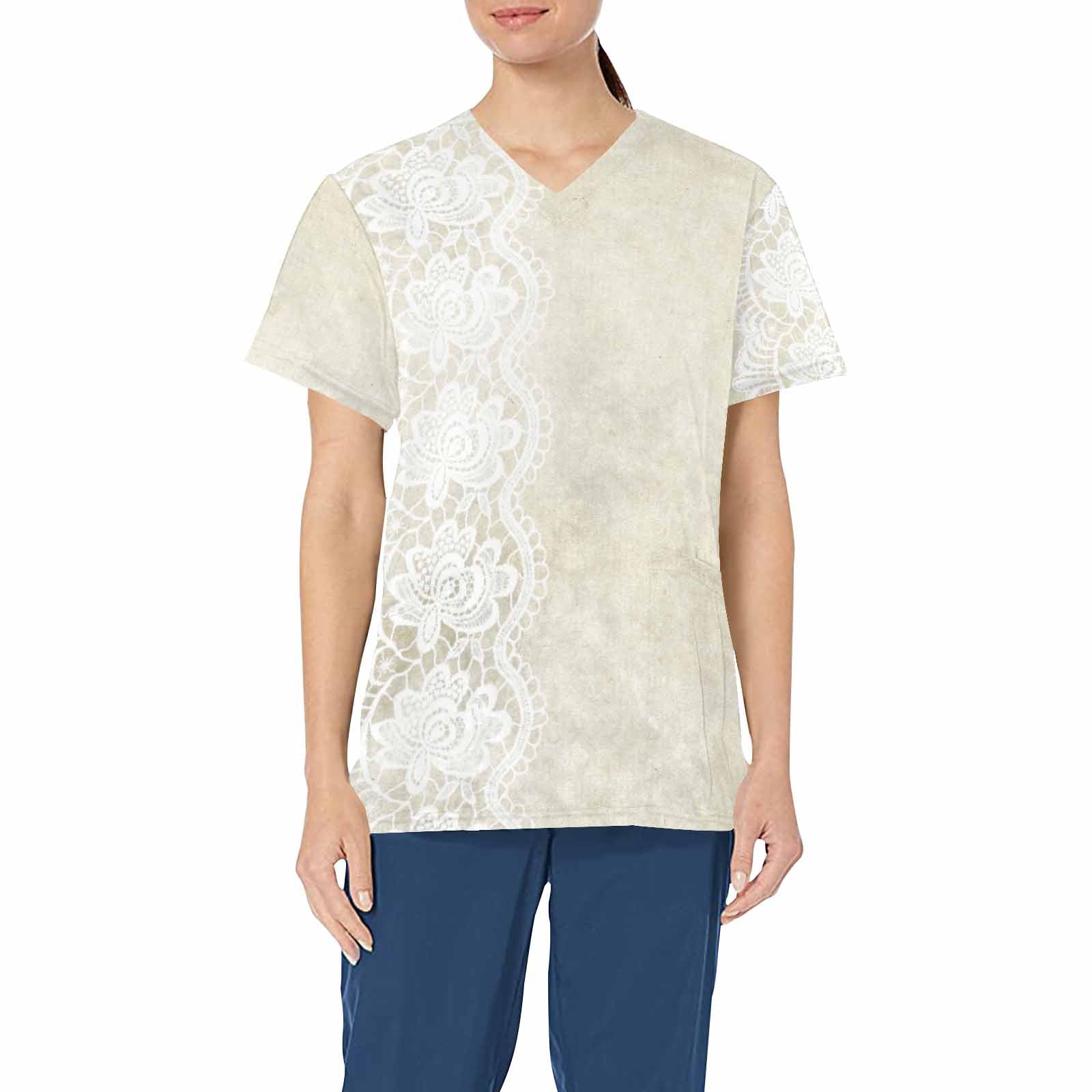 Victorian lace print professional scrubs, nurses scrub, unisex, design 27