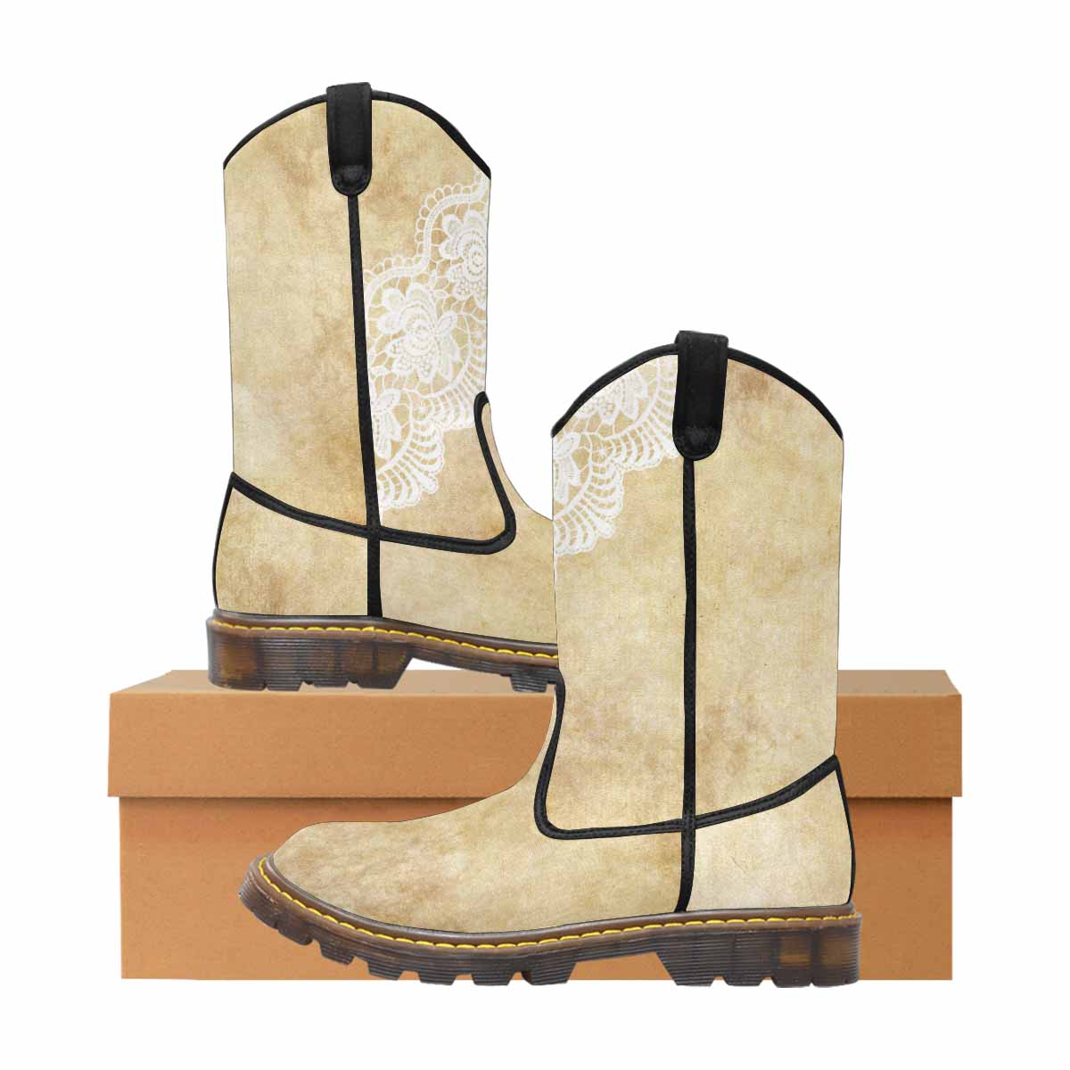 Victorian lace print, western lumber boots, design 29