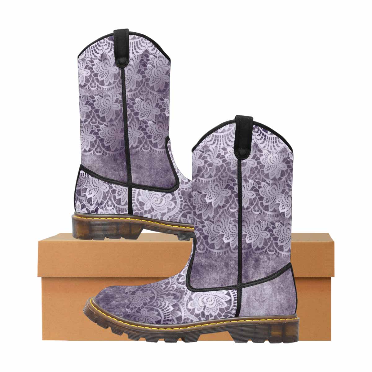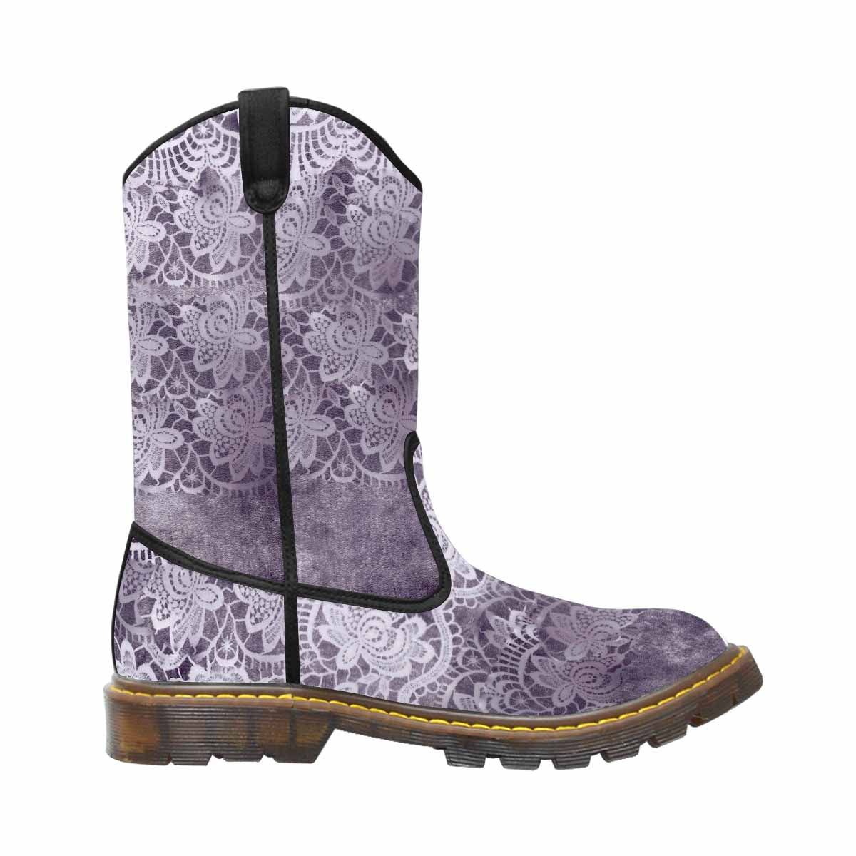 Victorian lace print, western lumber boots, design 39