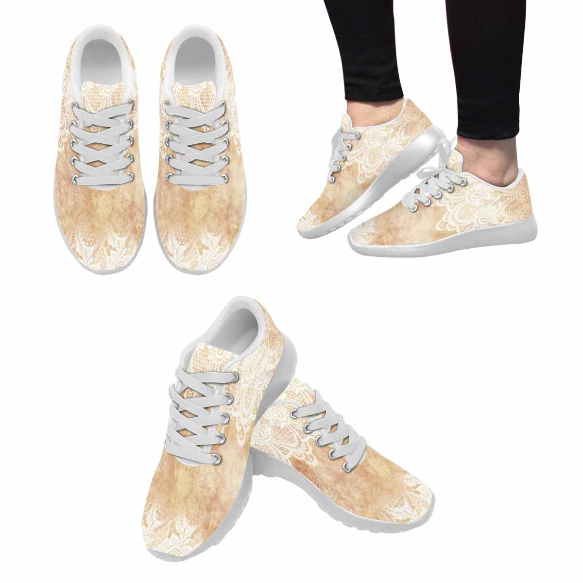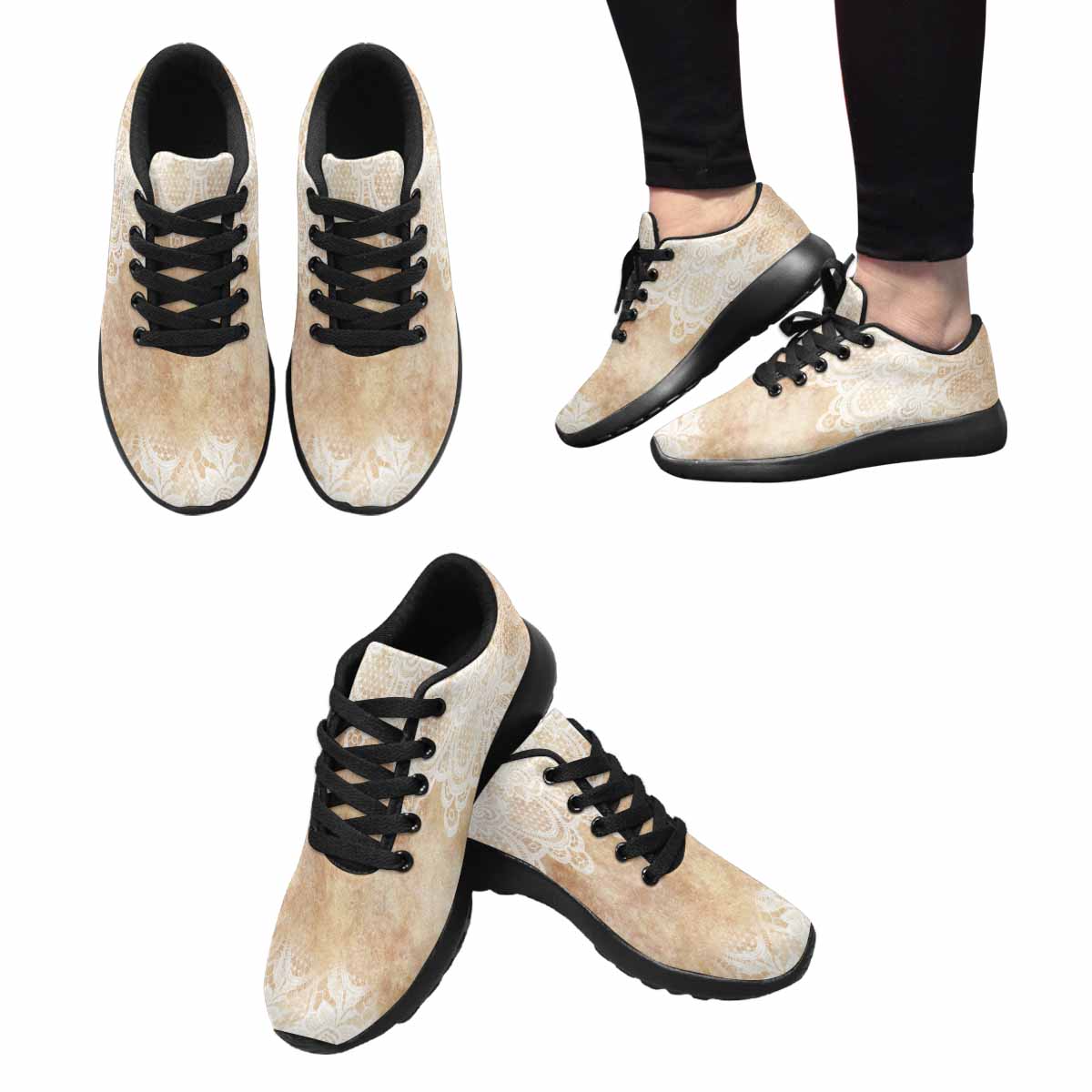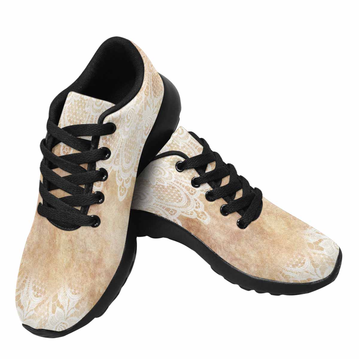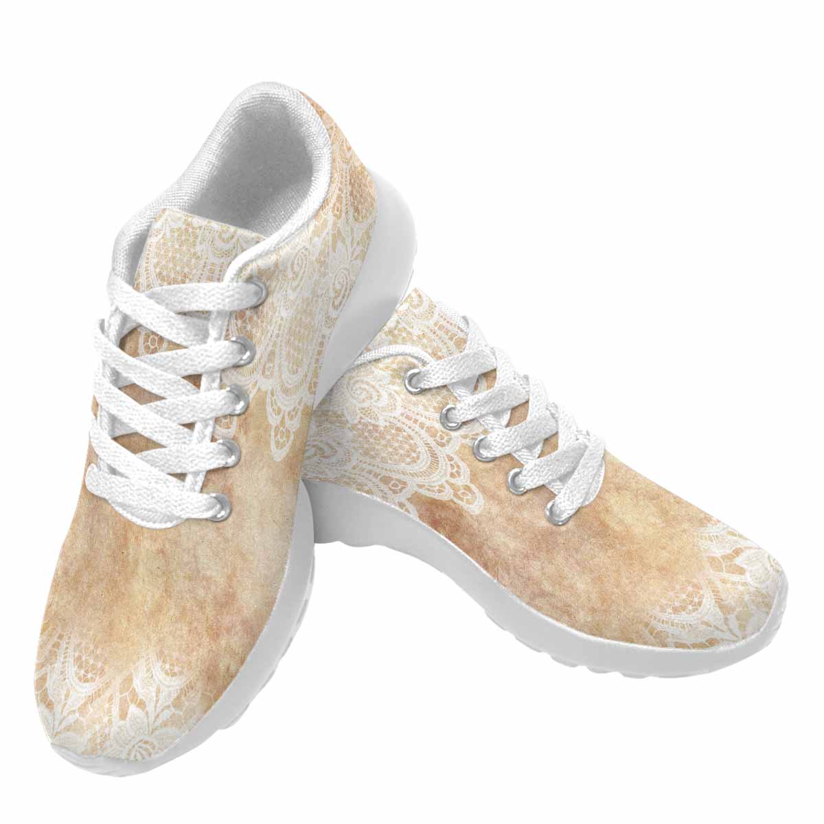 Victorian lace print, womens cute casual or running sneakers, design 30