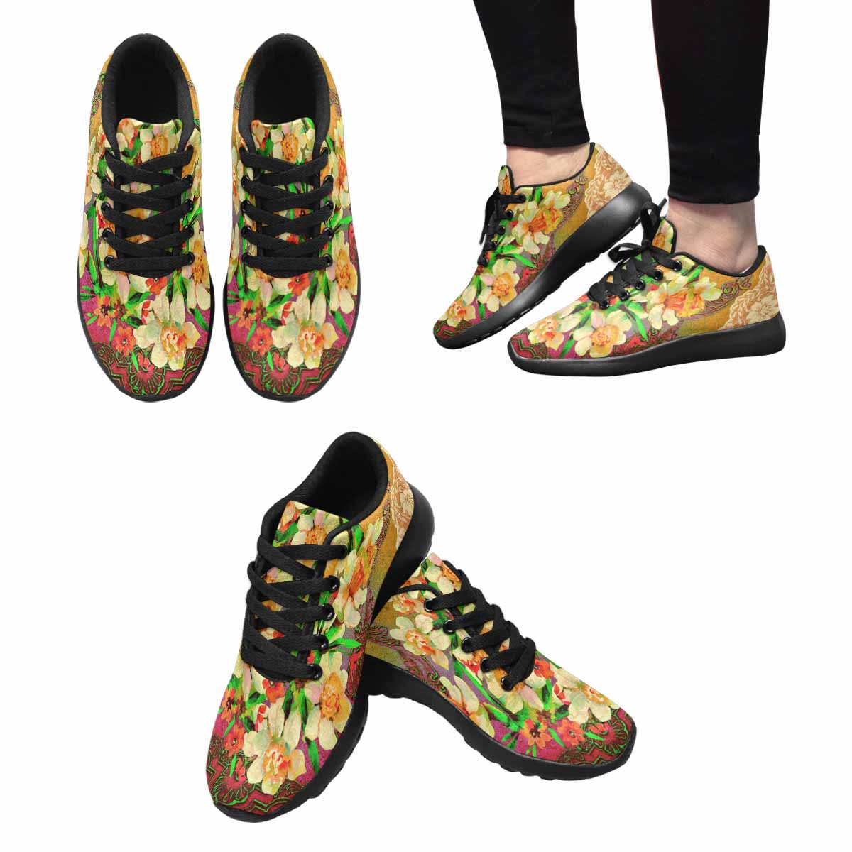 Victorian lace print, womens cute casual or running sneakers, design 48