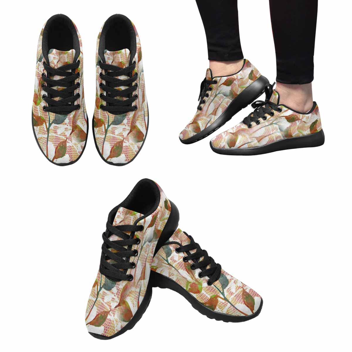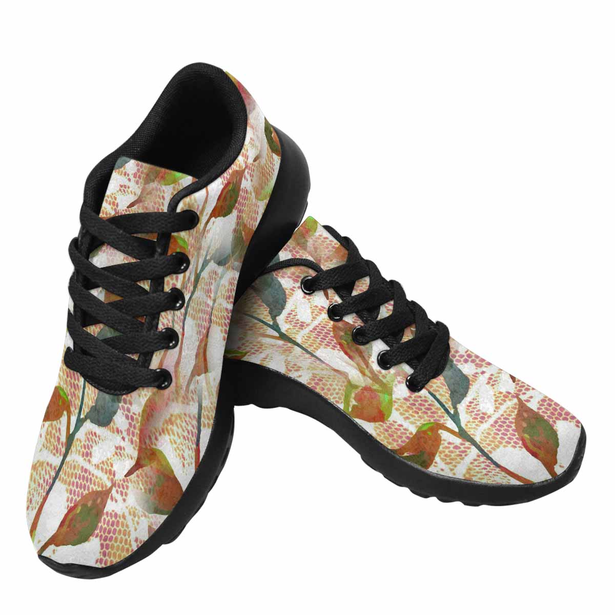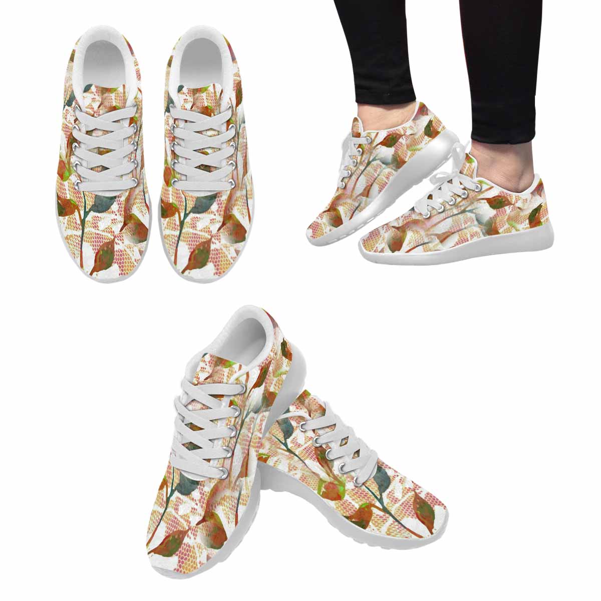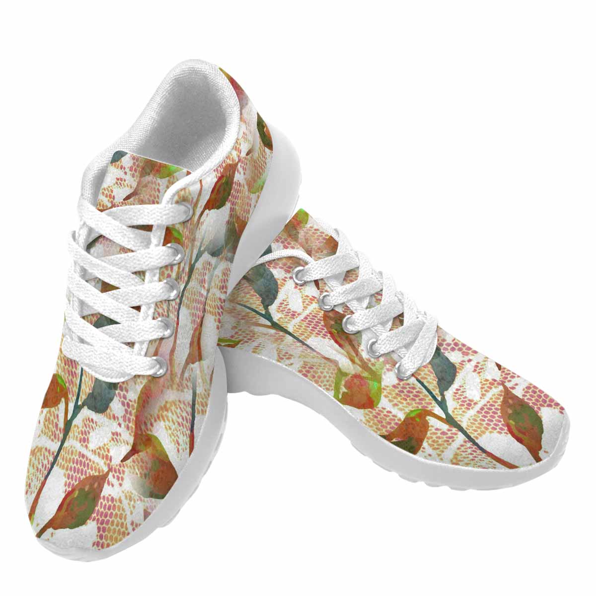 Victorian lace print, womens cute casual or running sneakers, design 52