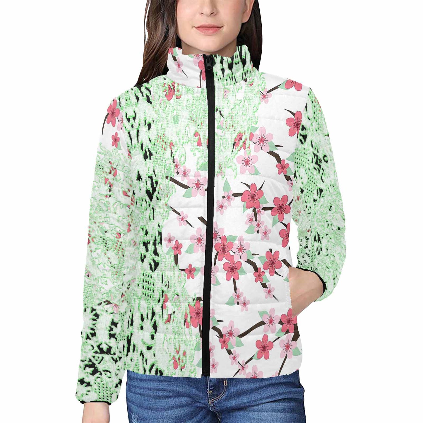 - Quilted bomber jacket with zipper closure and elastic cuffs provides maximum comfort.