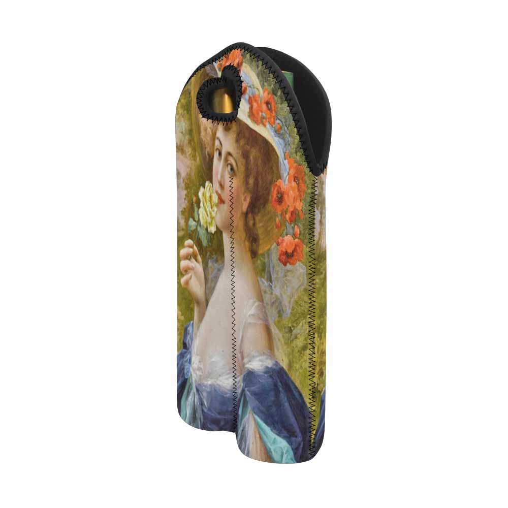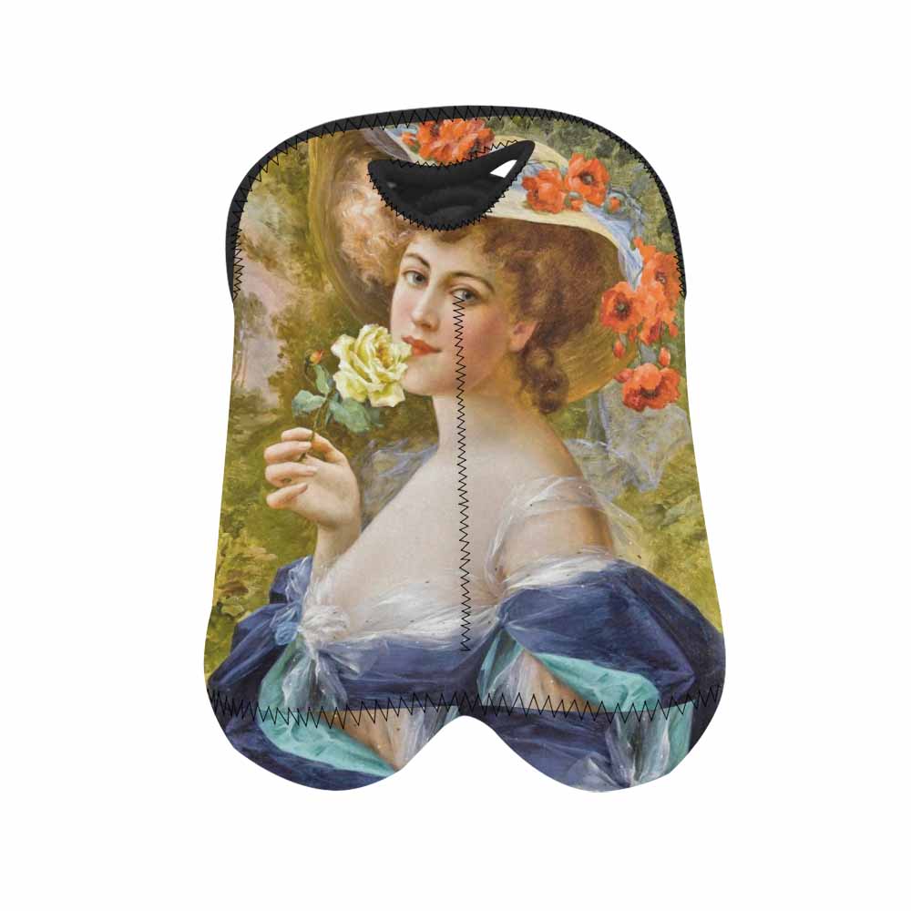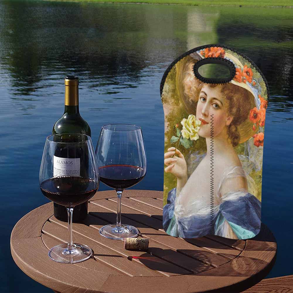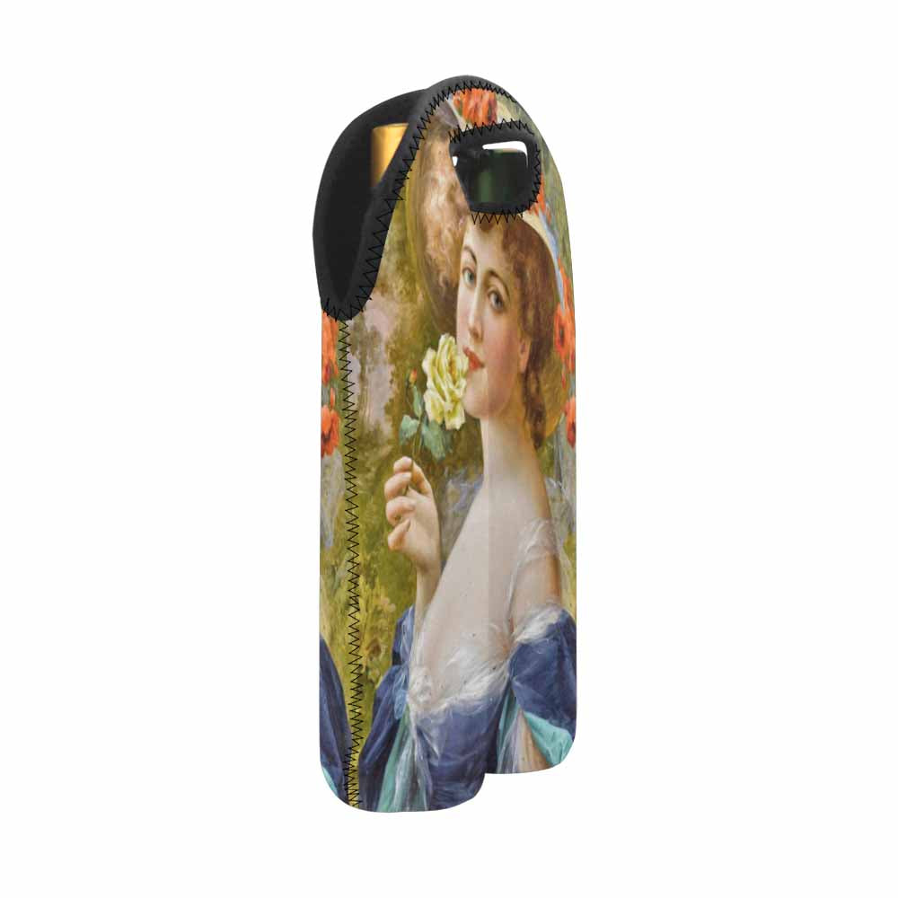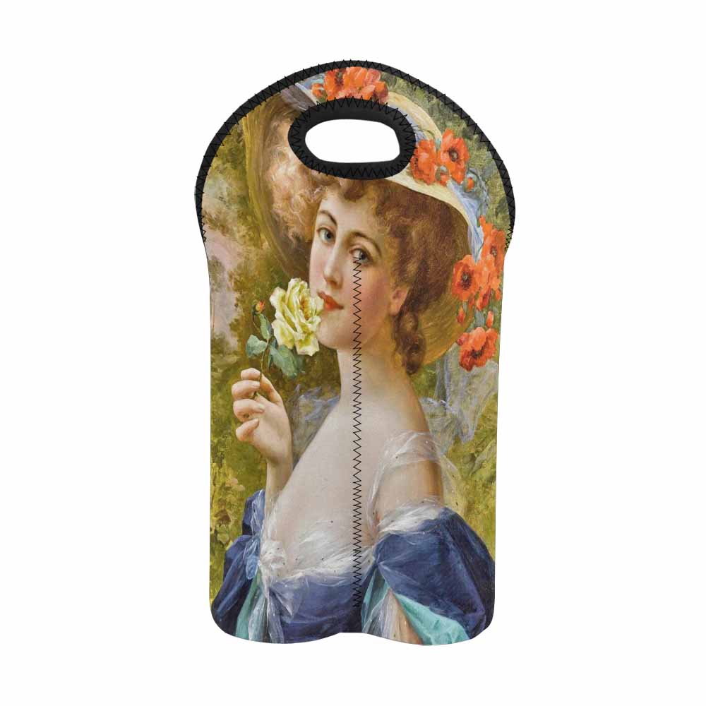 Victorian lady design 2 Bottle wine bag, Woman with yellow rose at mouth