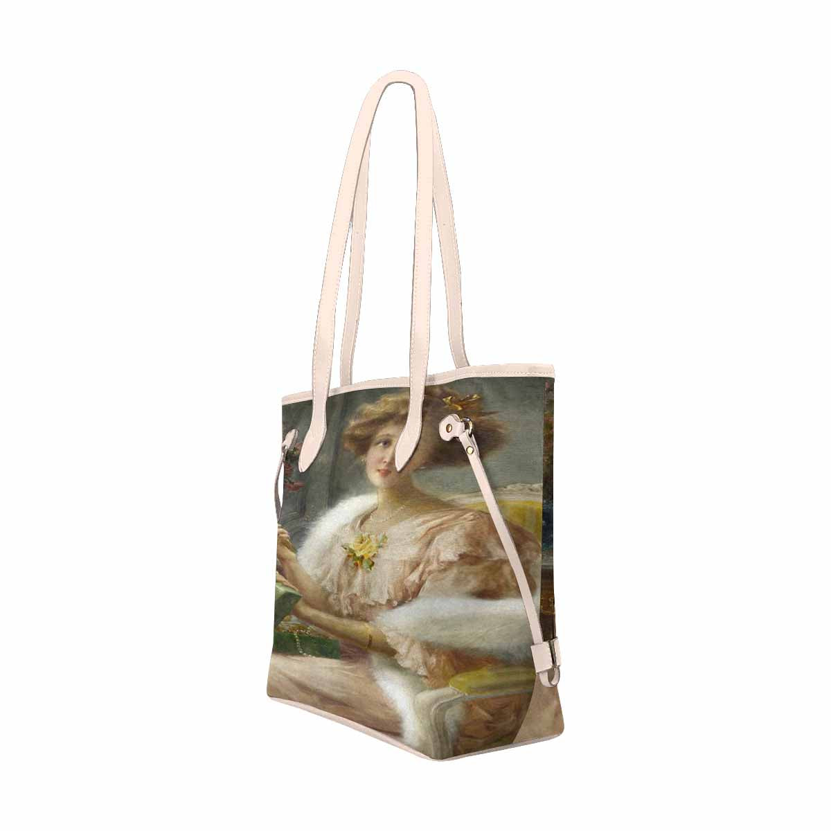 Victorian Lady Design Handbag, Model 1695361, A Young Lady With A Mirror, BEIGE/TAN TRIM