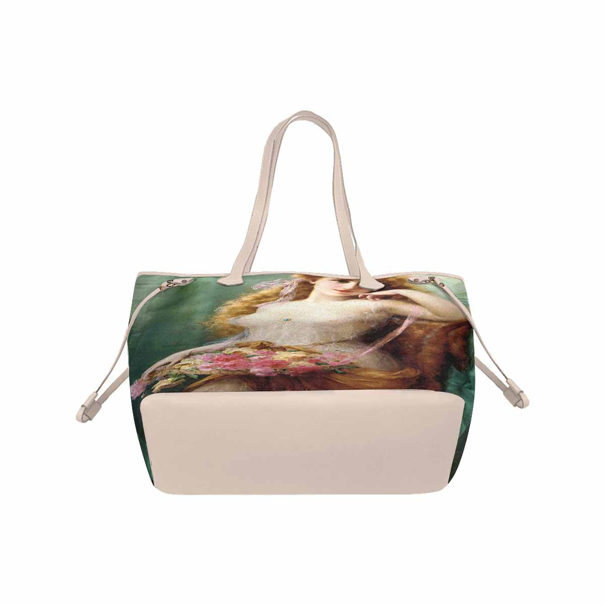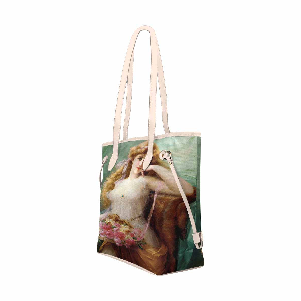 Victorian Lady Design Handbag, Model 1695361, Basket Of Roses, BEIGE/TAN TRIM