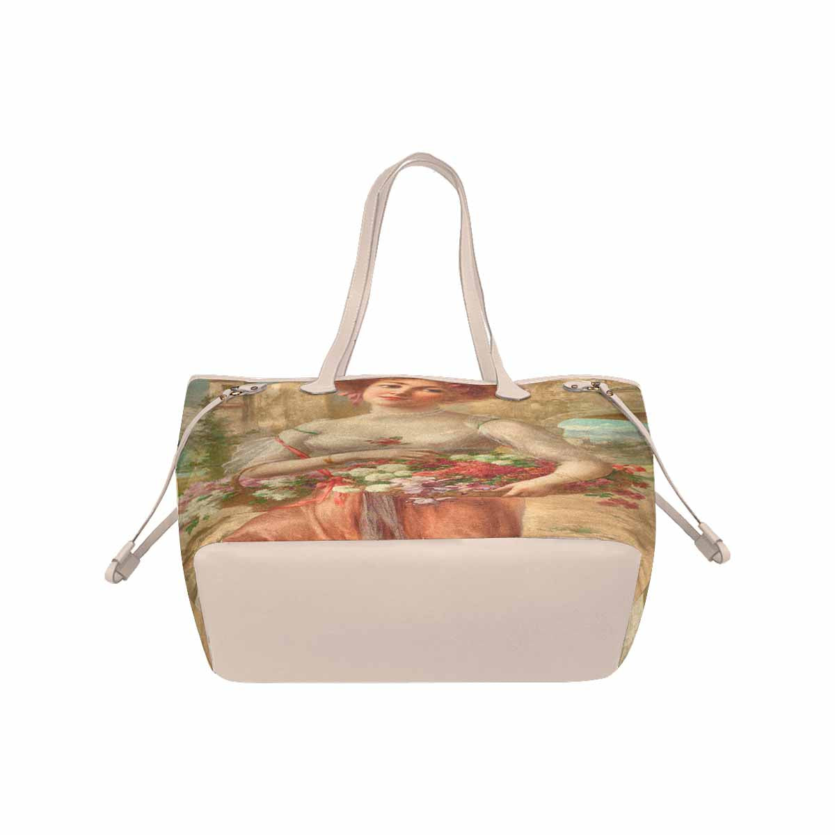 Victorian Lady Design Handbag, Model 1695361, Roses, BEIGE/TAN TRIM