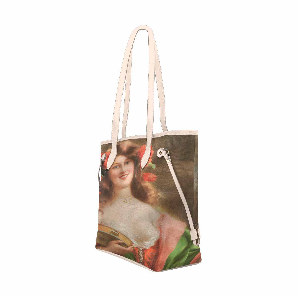 Victorian Lady Design Handbag, Model 1695361, Tambourine Girl, BEIGE/TAN TRIM